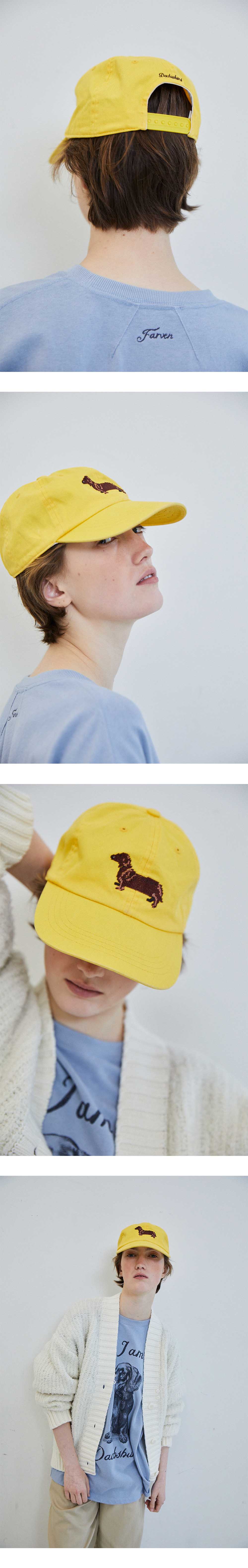 [배송 안내] *해당 상품은 9/25(수)부터 순차적으로 예약 배송되는 상품입니다. 빈티지한 무드의 컬러감과 착용감이 부드러운 면 소재로 만들어진 6패널형태의 볼캡입니다. 앞면에 닥스훈트 십자수디테일이 포인트로 들어가있으며 뒷면에는 일반자수 디테일과 사이즈조절이 가능한 어저스터 스냅으로 남녀 모두 착용이가능합니다.