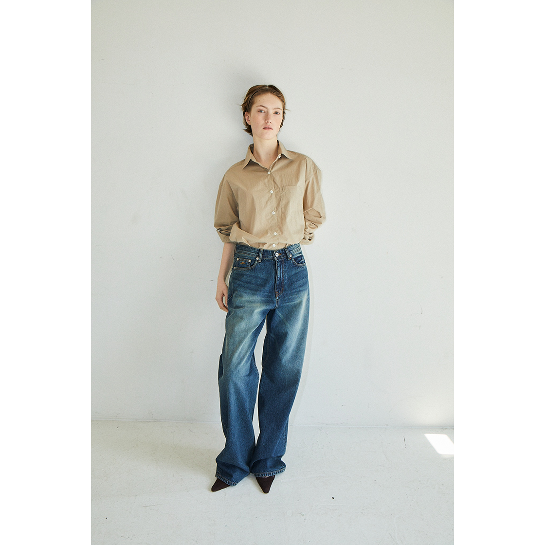 [배송 안내] *해당 상품은 9/25(수)부터 순차적으로 예약 배송되는 상품입니다. 여유로운 실루엣의 베이직한 루즈핏 코튼데님팬츠입니다. 12.5온스의 기본 무지 트윌 소재로 가볍고 부드러운 터치감이 특징인 친환경소재 터키 프리미엄 ‘보사(BOSSA)’ 데님 소재를 사용하였습니다. 바이오, 스톤 데미지워싱, 표백 및 탈색을 거쳤으며 워싱표현을 위해 틴 워싱을 첨가하였습니다. 왼쪽 포켓에 FRN자수 디테일과 로고가 각인된 니켈 무광 스냅과 YKK 지퍼가 사용되었습니다.