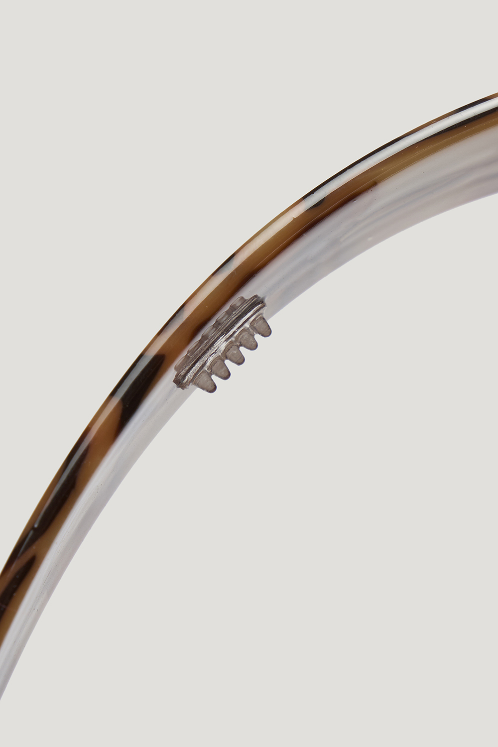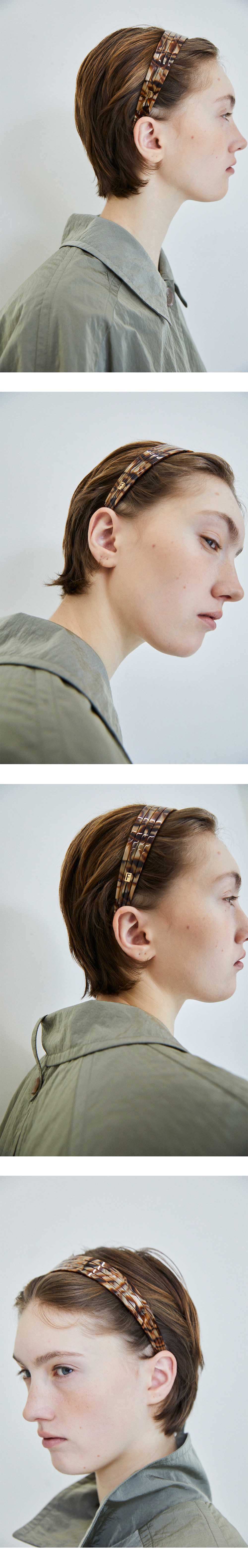 [배송 안내] *해당 상품은 9/25(수)부터 순차적으로 예약 배송되는 상품입니다. 3cm 두께의 데일리로 착용하기 좋은 헤드밴드입니다. 흘러내리지 않도록 안쪽에 고정 빗이 있으며 셀룰로이드 소재를 사용한 핸드메이드 제품으로 은은한 광택감이 돋보입니다. 마블브라운, 레오파드, 마블차콜 3컬러로 제작 되었으며 개발 심볼 금속을 코팅하여 마무리하였고 견고한 만듬새로 완성 도를 높인 아이템입니다.