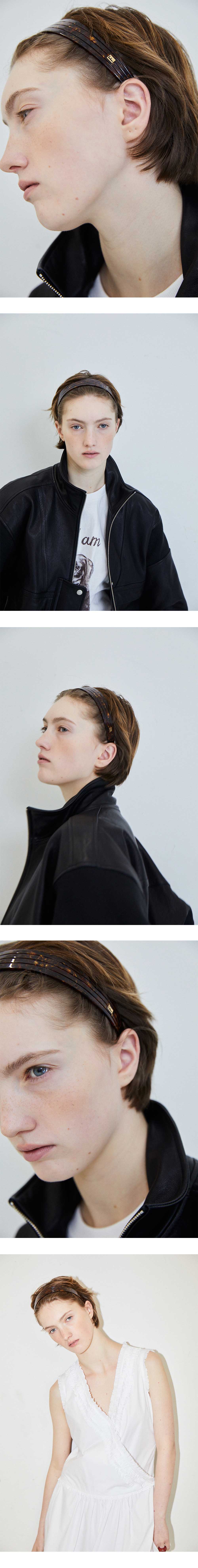 [배송 안내] *해당 상품은 9/25(수)부터 순차적으로 예약 배송되는 상품입니다. 3cm 두께의 데일리로 착용하기 좋은 헤드밴드입니다. 흘러내리지 않도록 안쪽에 고정 빗이 있으며 셀룰로이드 소재를 사용한 핸드메이드 제품으로 은은한 광택감이 돋보입니다. 마블브라운, 레오파드, 마블차콜 3컬러로 제작 되었으며 개발 심볼 금속을 코팅하여 마무리하였고 견고한 만듬새로 완성 도를 높인 아이템입니다.