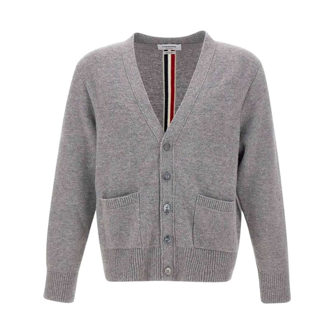 Thom Browne Merino Wool Washed Pique Cardigan Light Grey