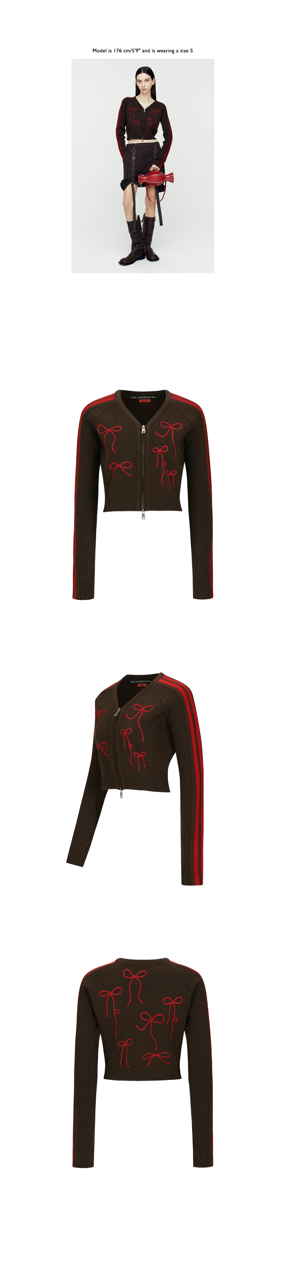 ADSB 앤더슨벨 우먼 리본 엠브로이더리 니트 가디건 레드