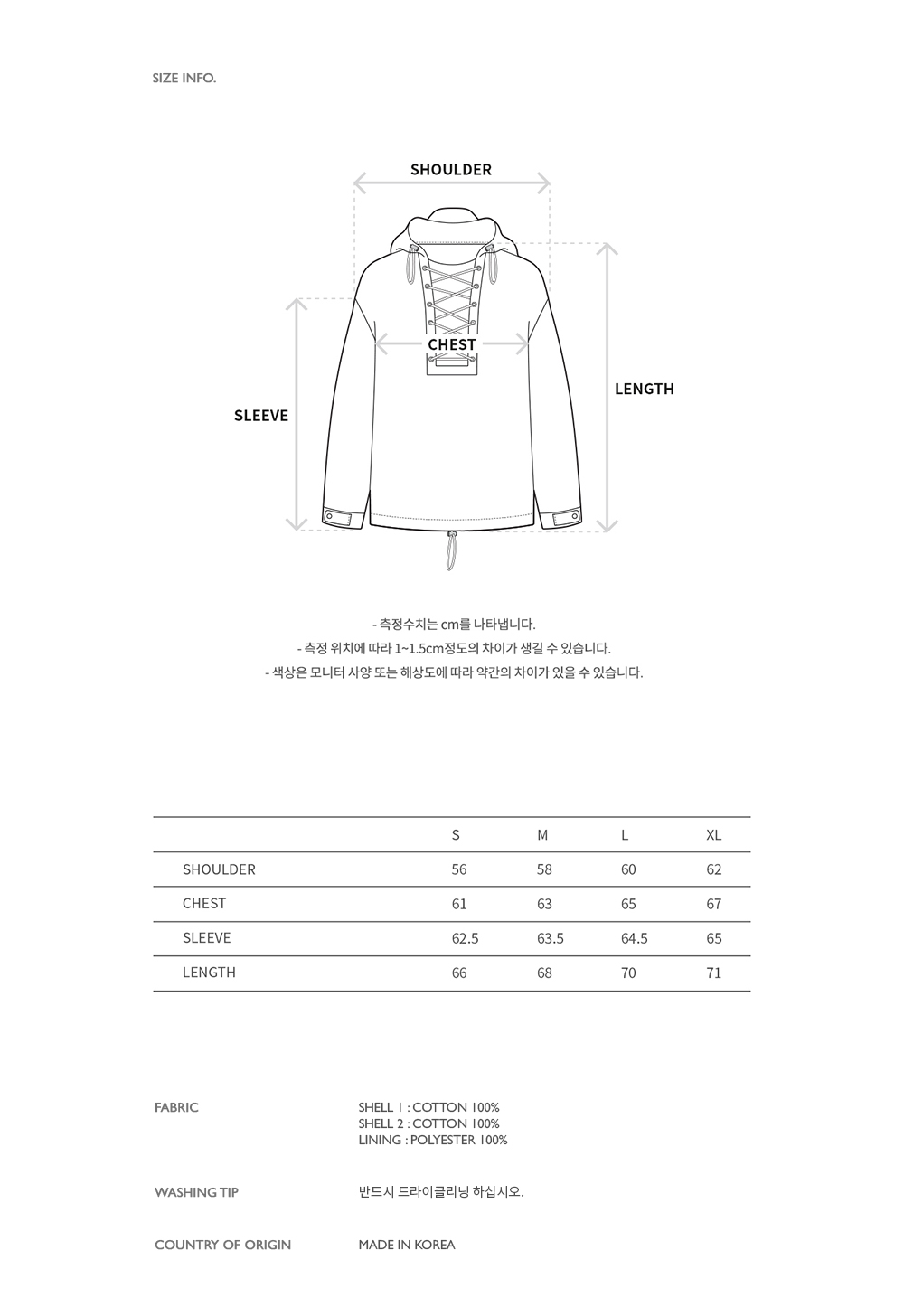 | 어깨 | 가슴 | 소매기장 | 총장 |