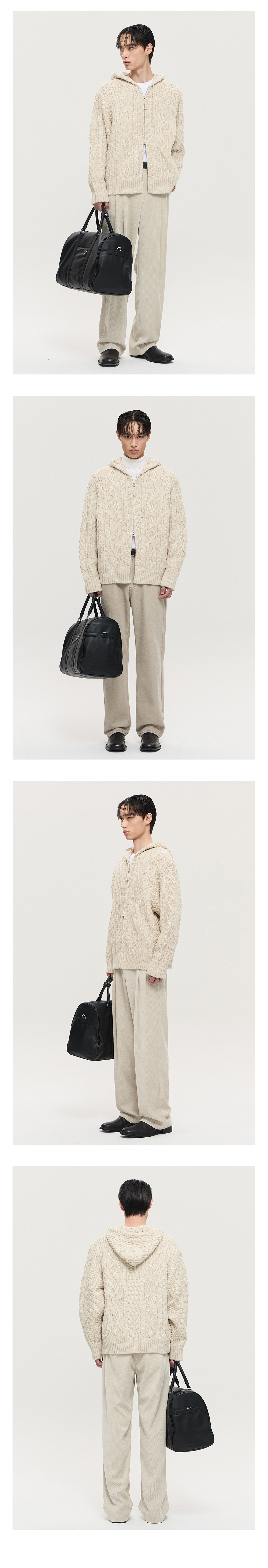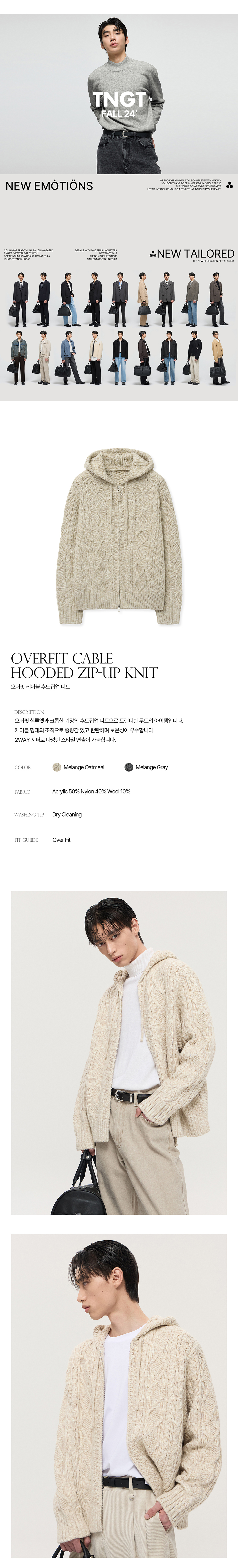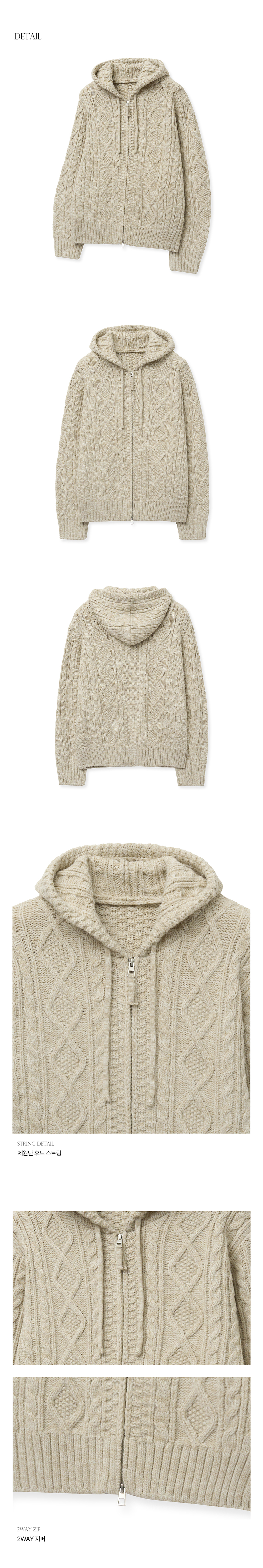 티엔지티 오버핏 케이블 후드집업 니트 멜란지오트밀