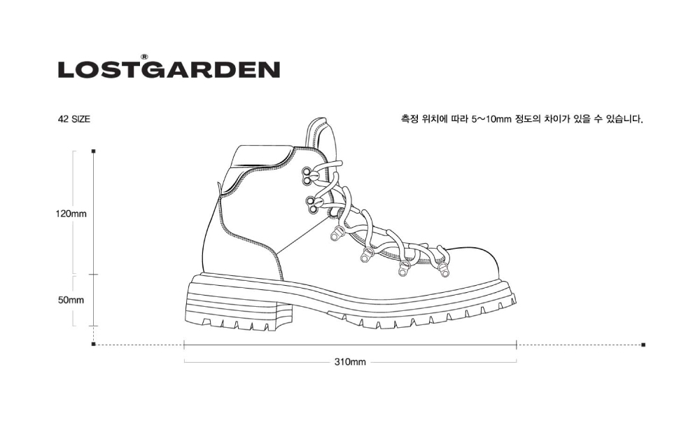 • 와이드하고 볼드한 라운드 토 실루엣의 마운틴 부츠 • 어퍼와 웰트의 스티치 디테일 • 텅 안 쪽에 부착된 포인트 라벨 • 워싱 가공을 거친 아웃솔과 신발끈 • 러프한 표면감의 이태리 베지터블 스웨이드 소가죽 • 접지력을 위해 코만도 러버를 덧댄 이중 홍창 • 굿이어 웰트 제법으로 제작하여 견고한 내구성 상품 정보 • Upper: Italy Vegetable Suede Cow Leather • Lining: Italy Vegetable Cow Leather • Insole: Italy Vegetable Cow Leather & Latex (0.5cm) • Outsole: Italy Double Leather Sole & Commando Rubber Sole (5cm) 사이즈 안내 • 평소 착용하시는 신발 정사이즈로 추천드립니다.