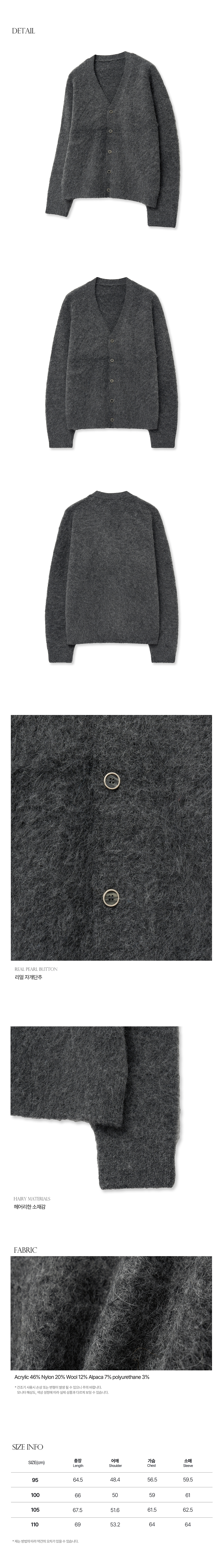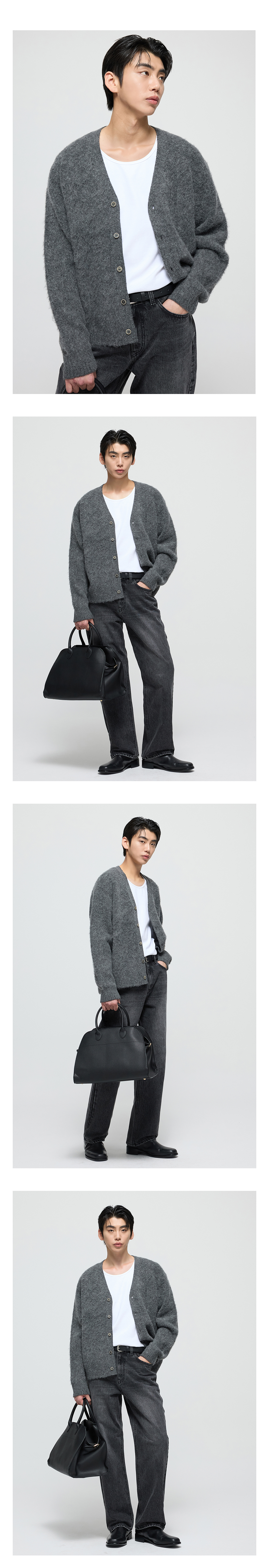 티엔지티 오버핏 알파카 브러쉬드 가디건 그레이