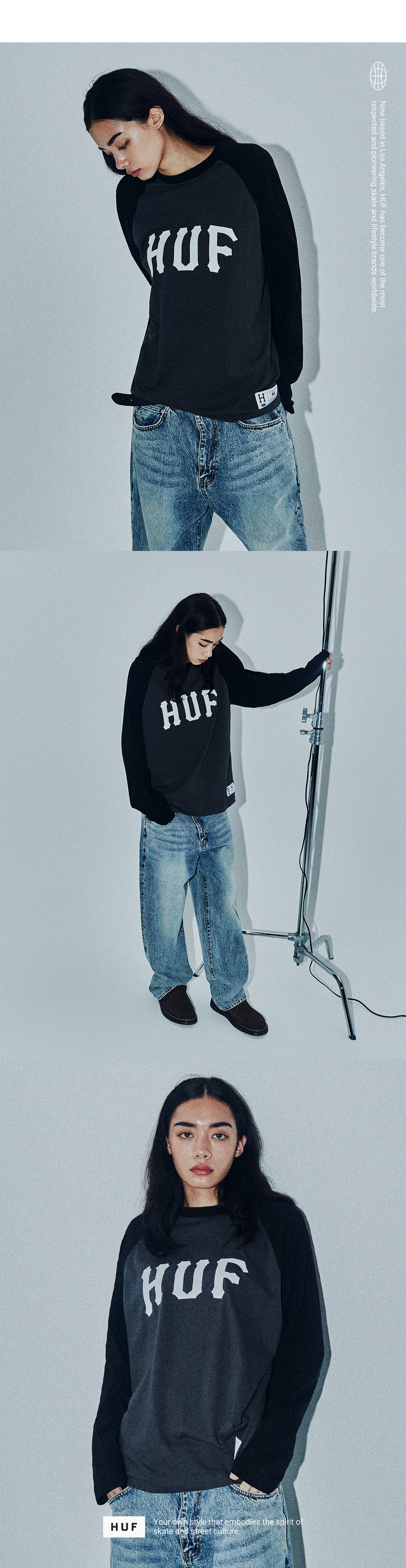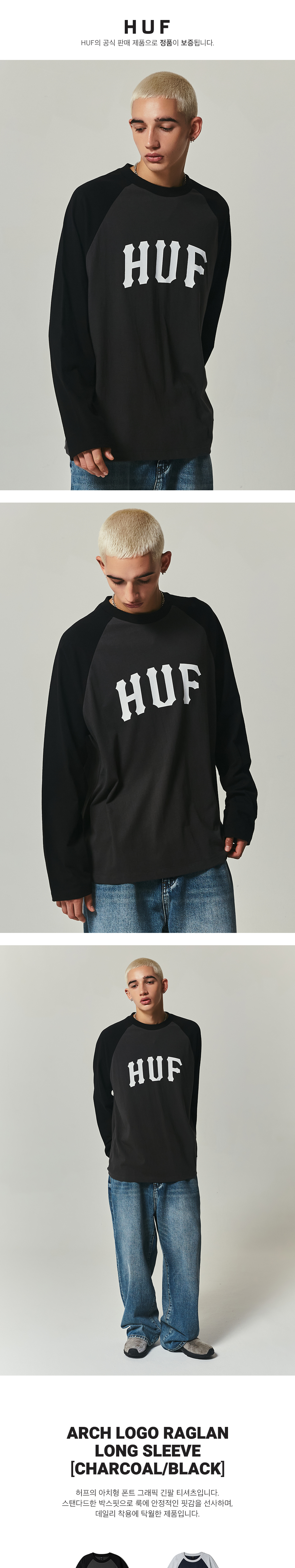 허프 아치 로고 래글런 긴팔 차콜 검정