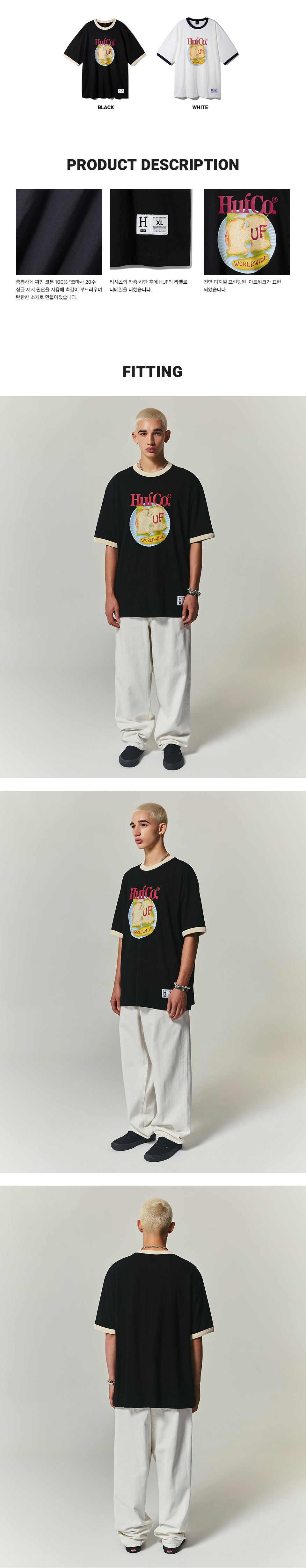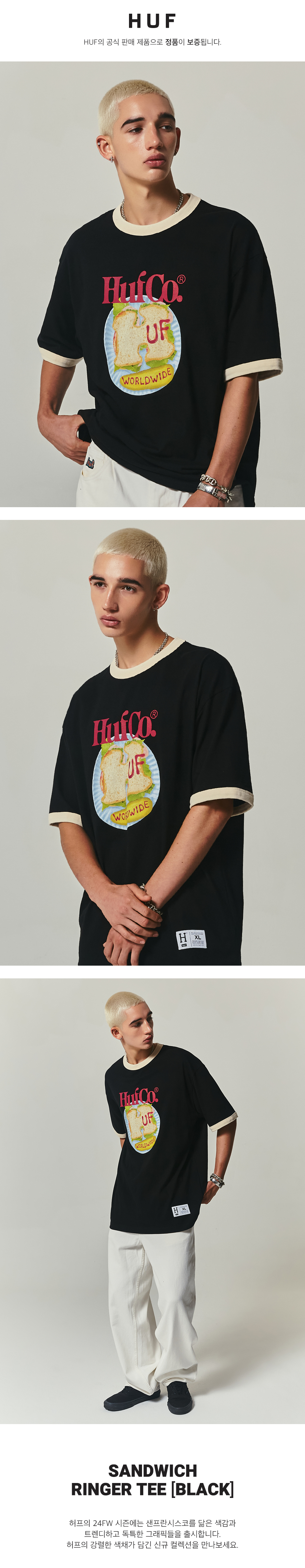 허프 샌드위치 링거 티셔츠 검정