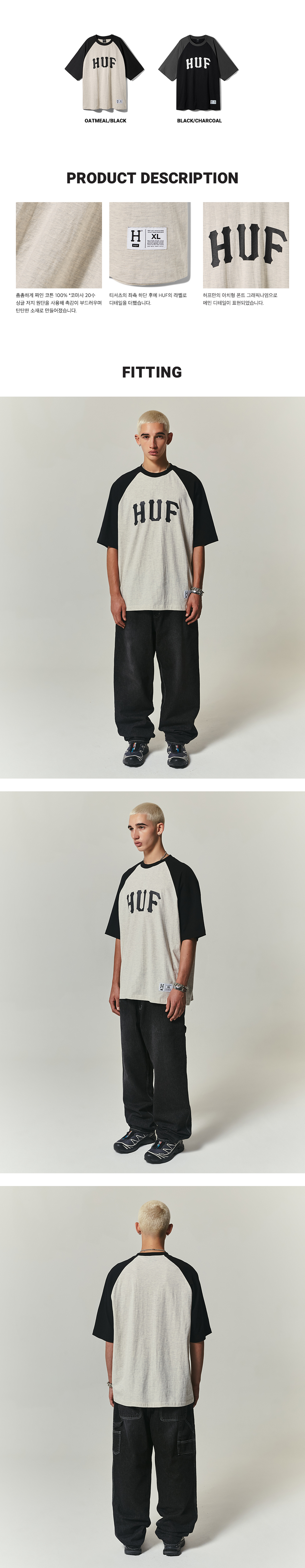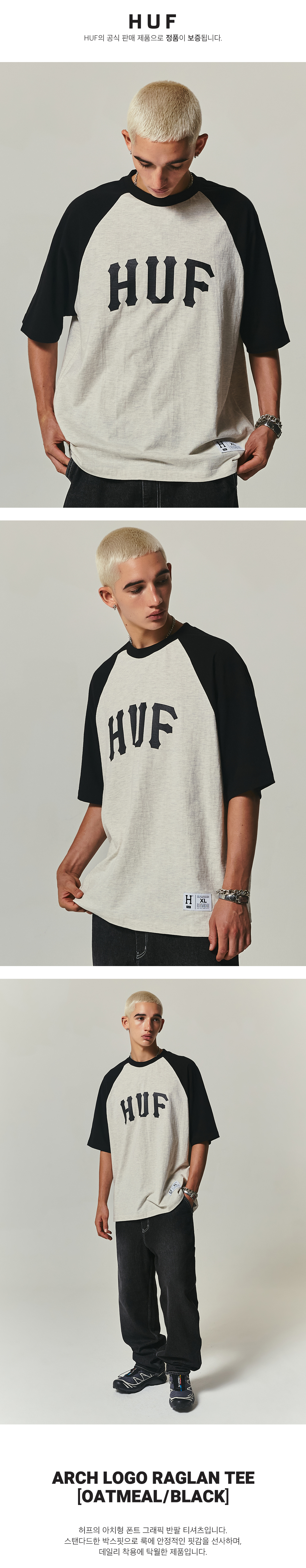 허프 아치 로고 래글런 티셔츠 오트밀 검정