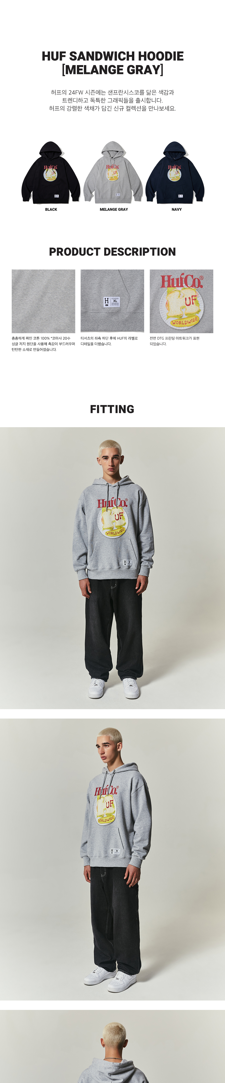 허프 샌드위치 후디 멜란지 그레이