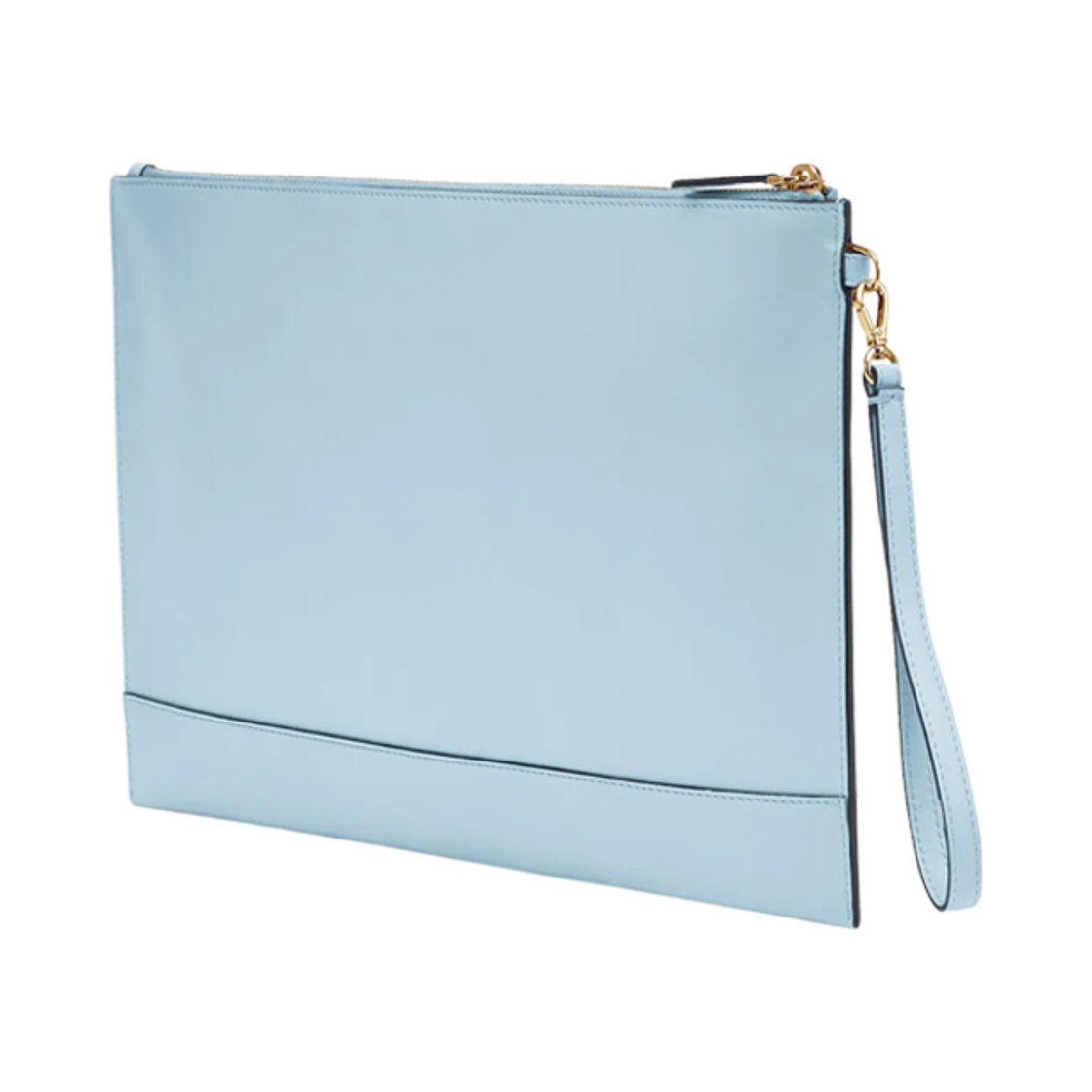 펜디 레더 라지 플랫 파우치 라이트 블루