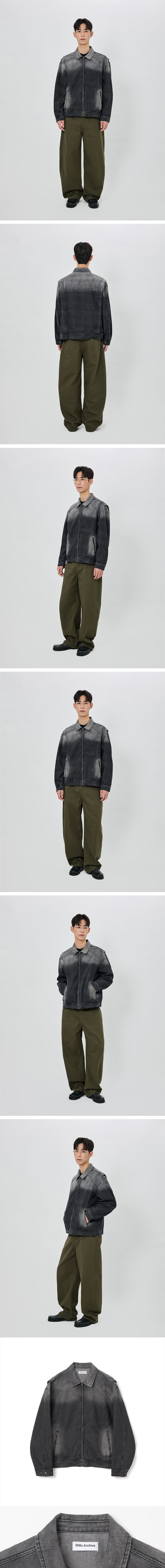 밀로 아카이브 백 플리츠 데님 자켓 워시드 블랙