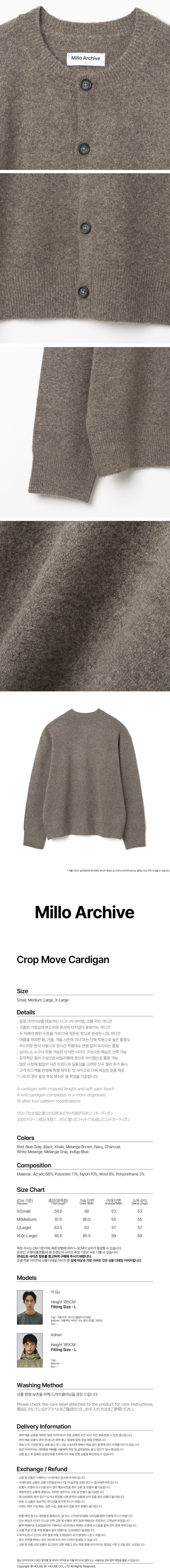 밀로 아카이브 크롭 무브 가디건 멜란지 브라운
