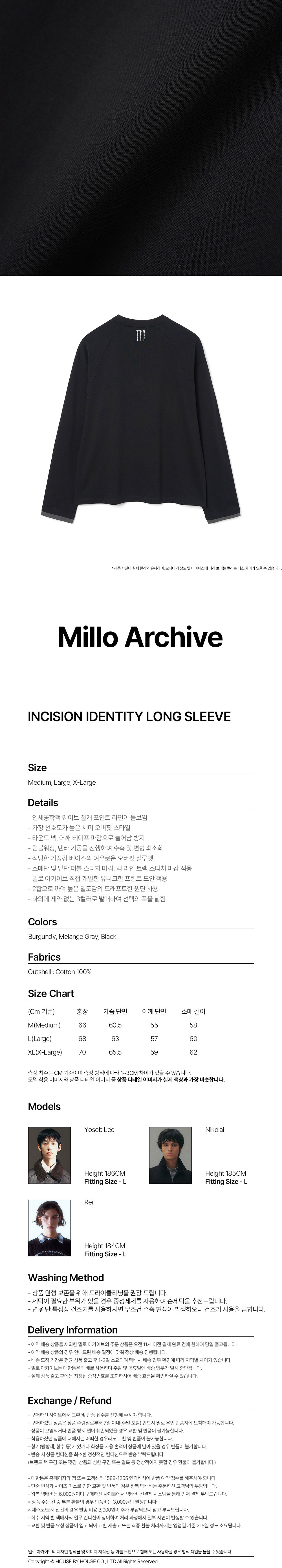 밀로 아카이브 인시전 아이덴티티 롱 슬리브 블랙