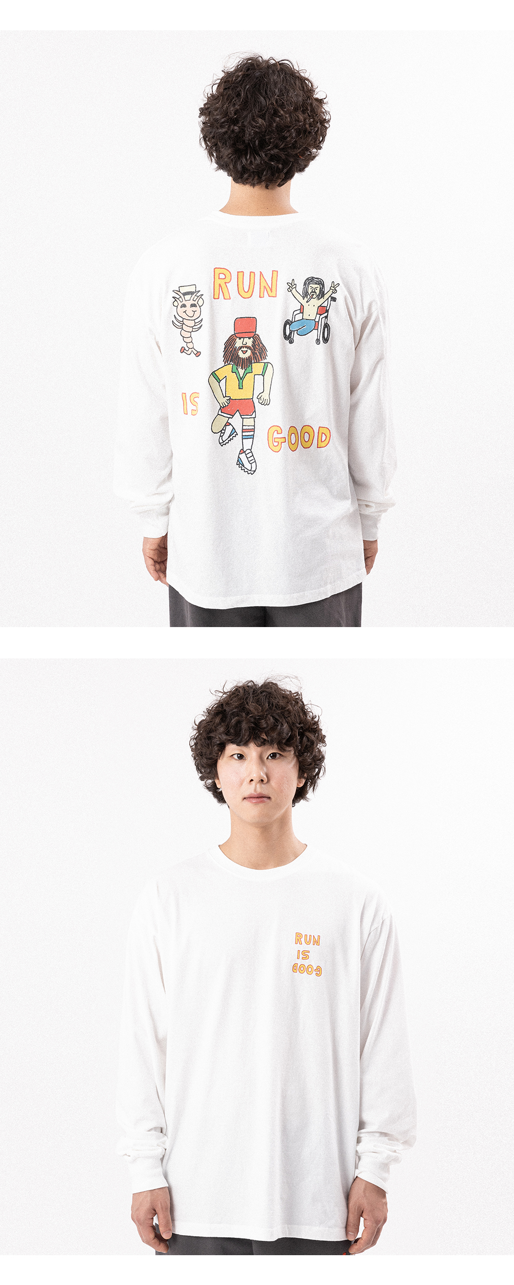 빅웨이브 컬렉티브 런 이즈 굿 긴팔 티 오프 화이트