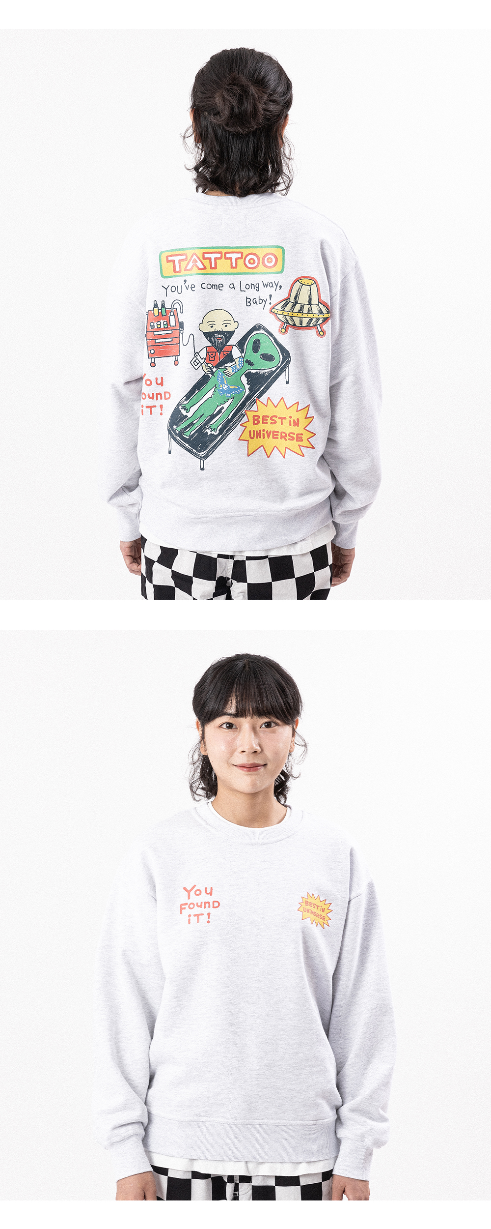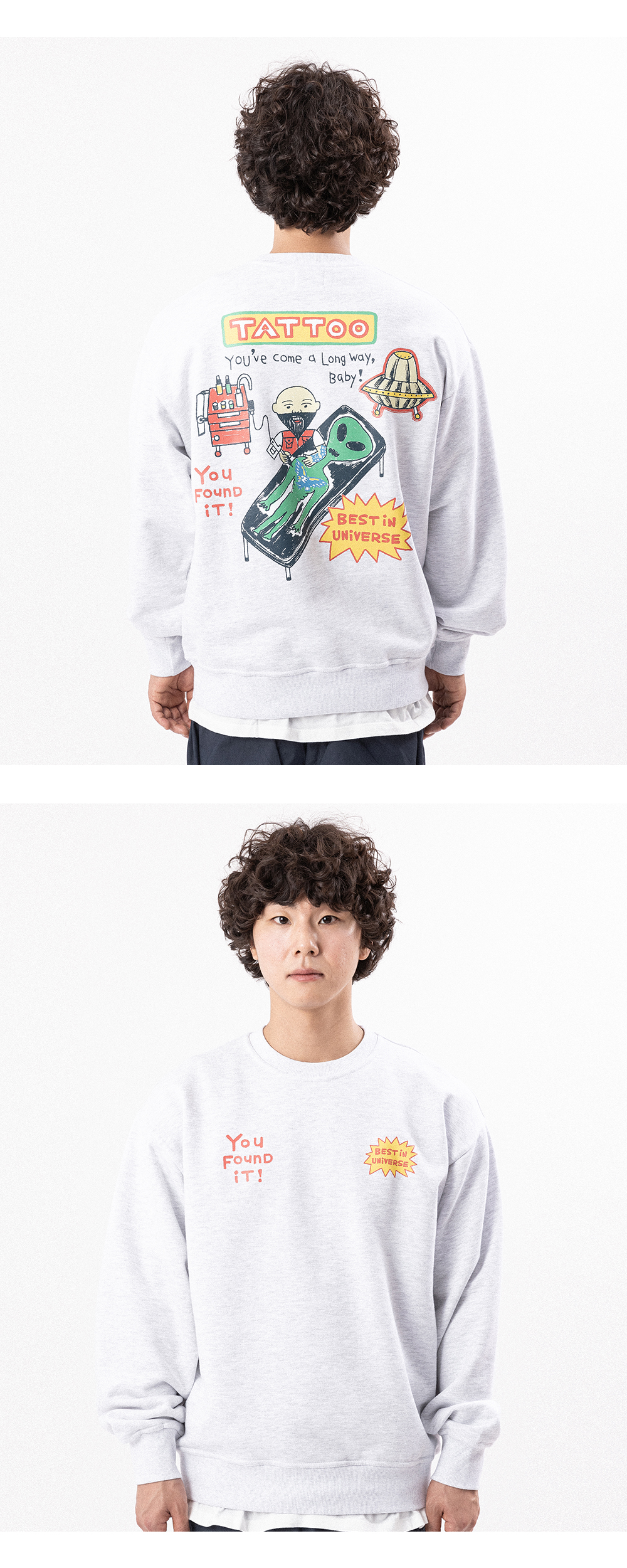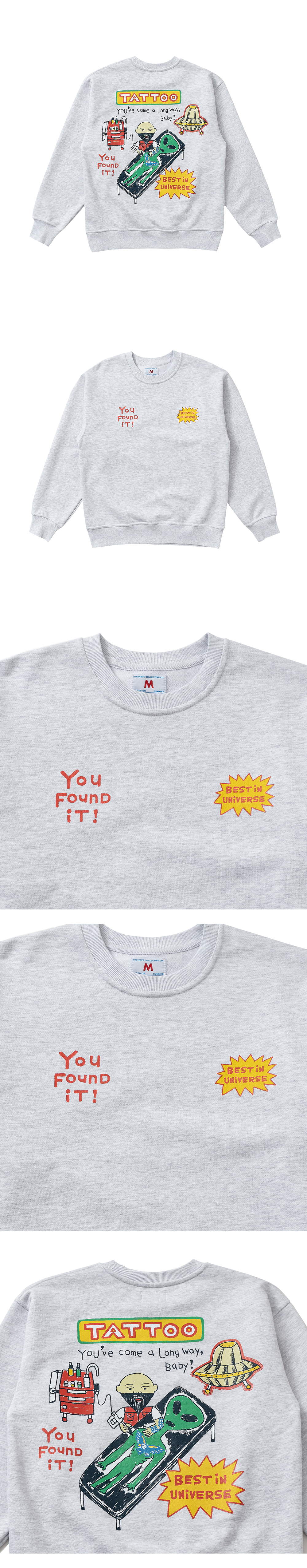 빅웨이브 컬렉티브 베스트 인 유니버스 타투 스웻셔츠 화이트 멜란지