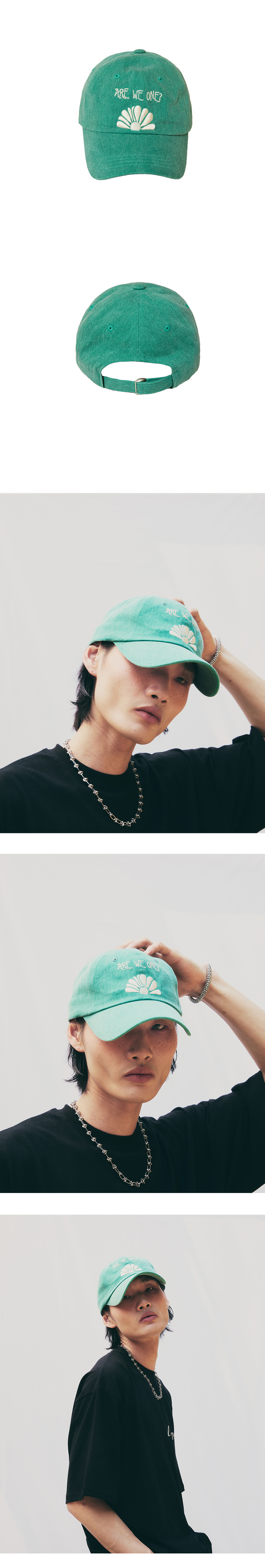 드반 데이지 자수 볼캡 그린