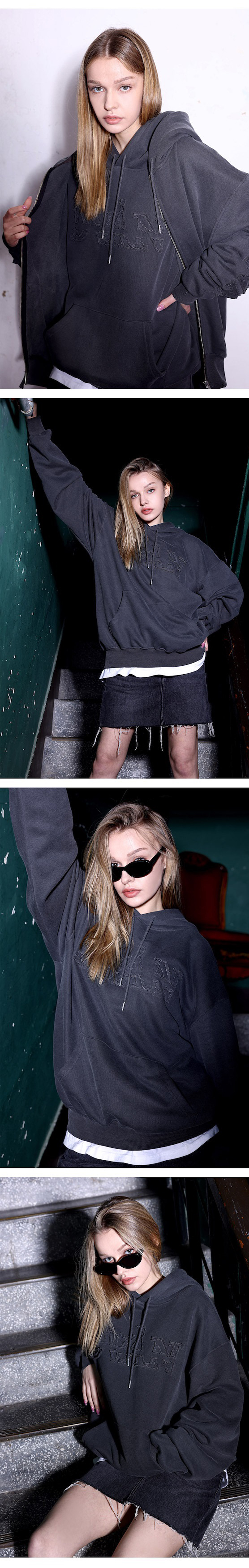 드반 데미지 피그먼트 후드 핑크