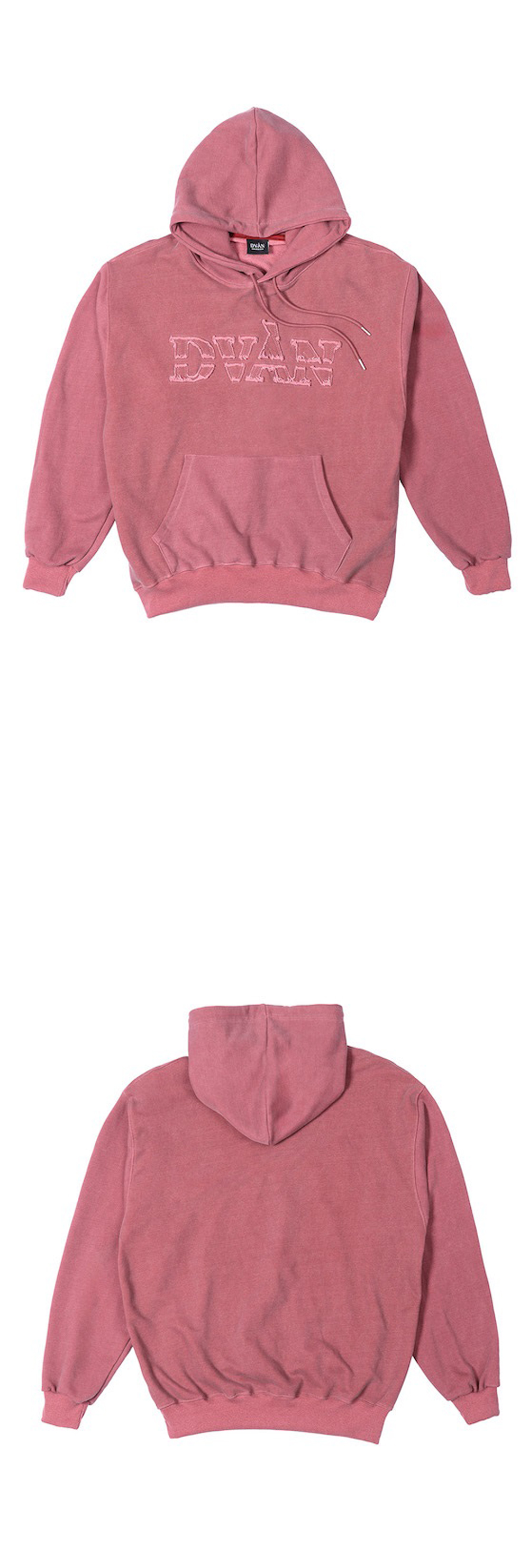 DVAN Damaged Emb Pigment Hoodie Dark Pink