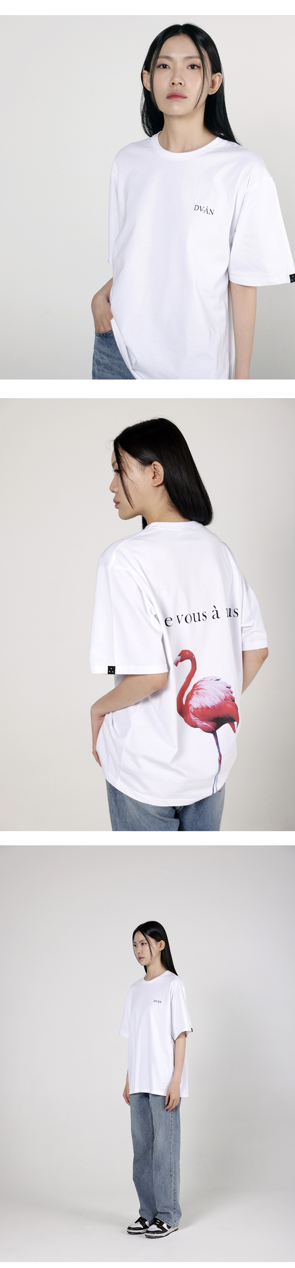 드반 레드 플라밍고 그래픽 티셔츠 화이트