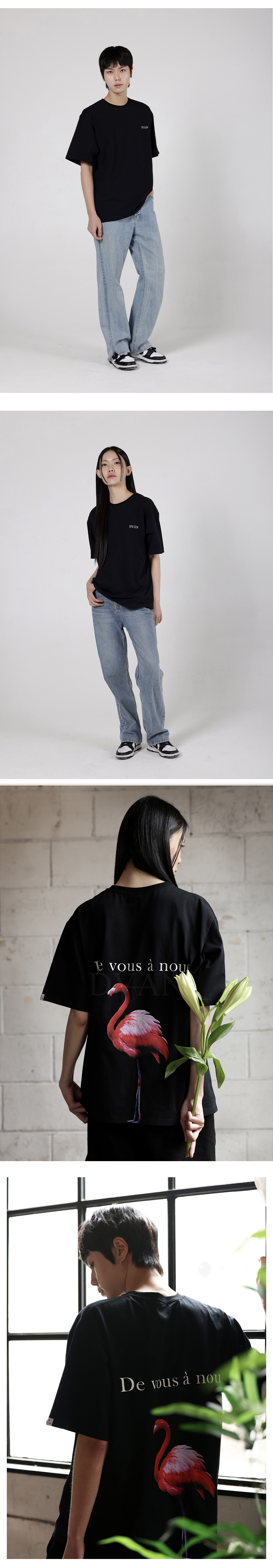 드반 레드 플라밍고 그래픽 티셔츠 블랙