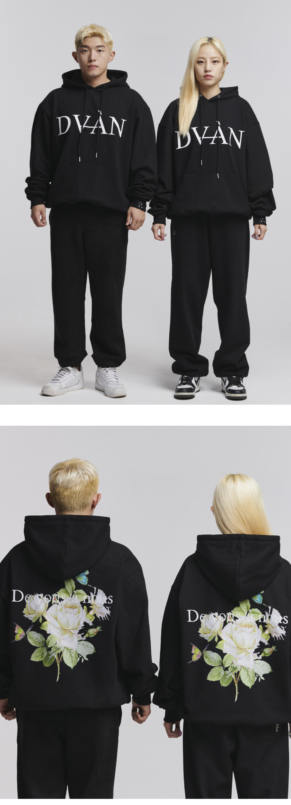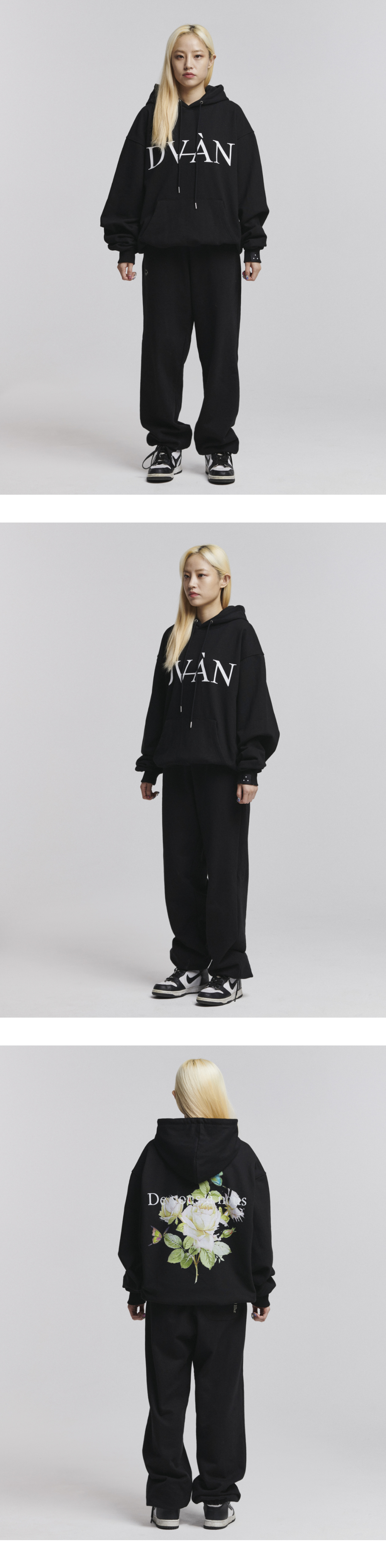 DVAN White Roselia Hoodie Black