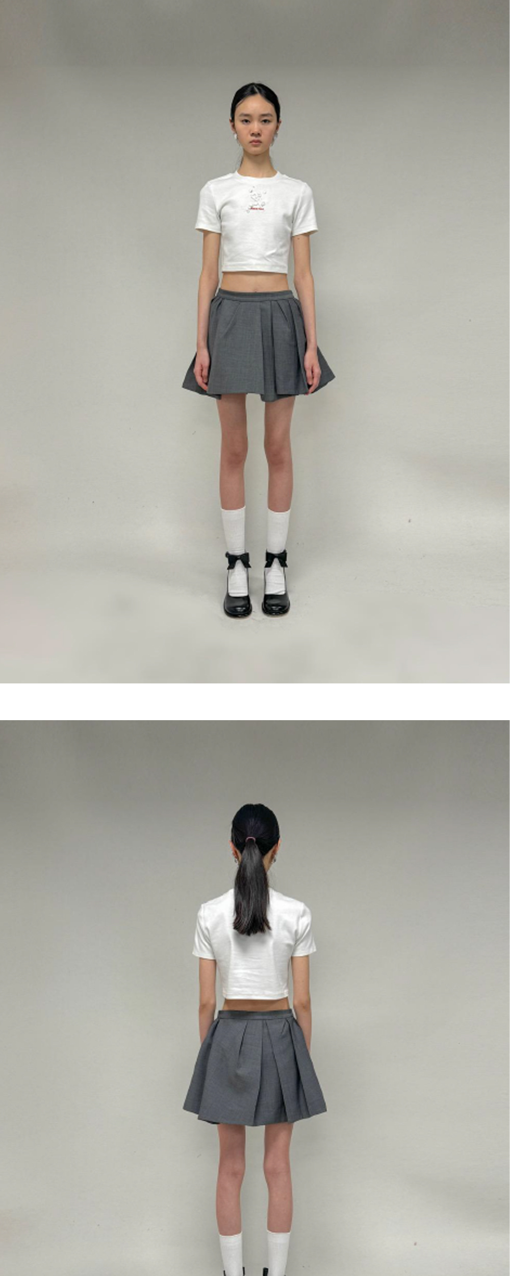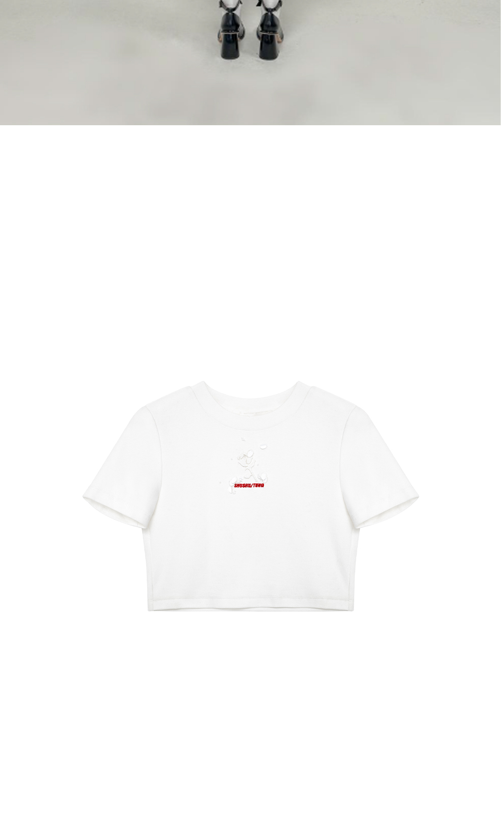 슈슈통 우먼 스테레오 로즈 엠벨리시드 크롭 티셔츠 화이트 - 24FW