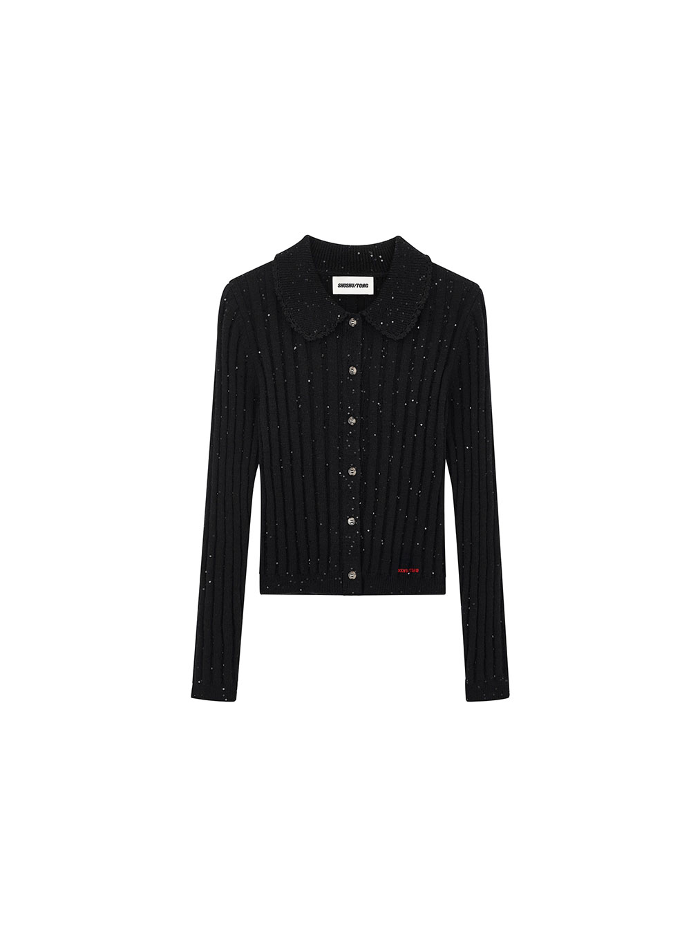 은은한 반짝임으로 활용도가 높은 슈슈통의 시퀸 가디건입니다. - 반짝임 디테일 원단 - 골지 소재