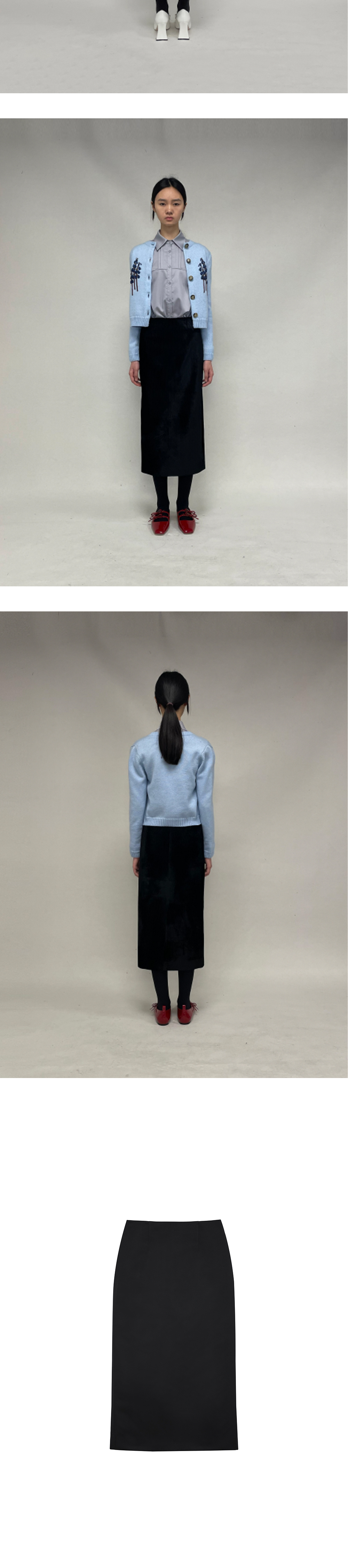 슈슈통 우먼 스트레이트 피티드 미디 스커트 블랙 - 24FW
