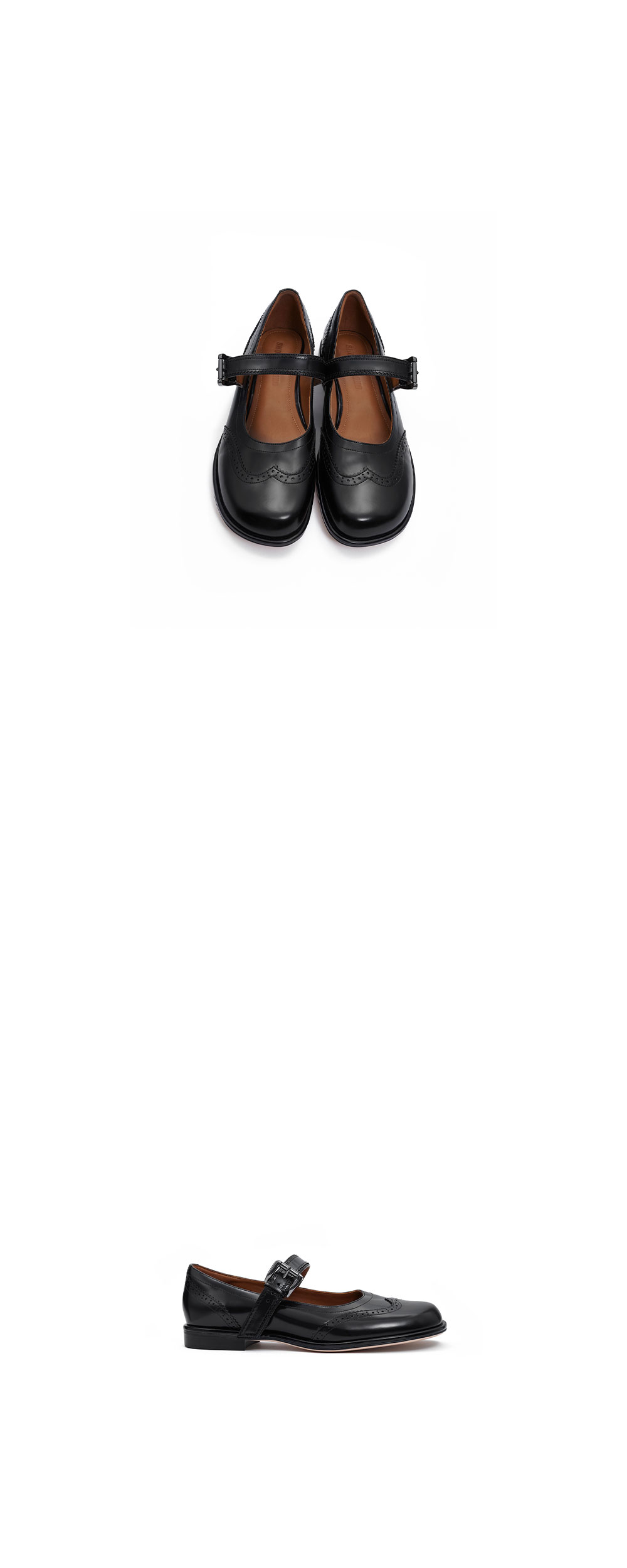 윙팁 슈즈를 연상시키는 슈슈통의 메리 제인입니다. - 스퀘어 토 - 발등 버클 스트랩 디테일