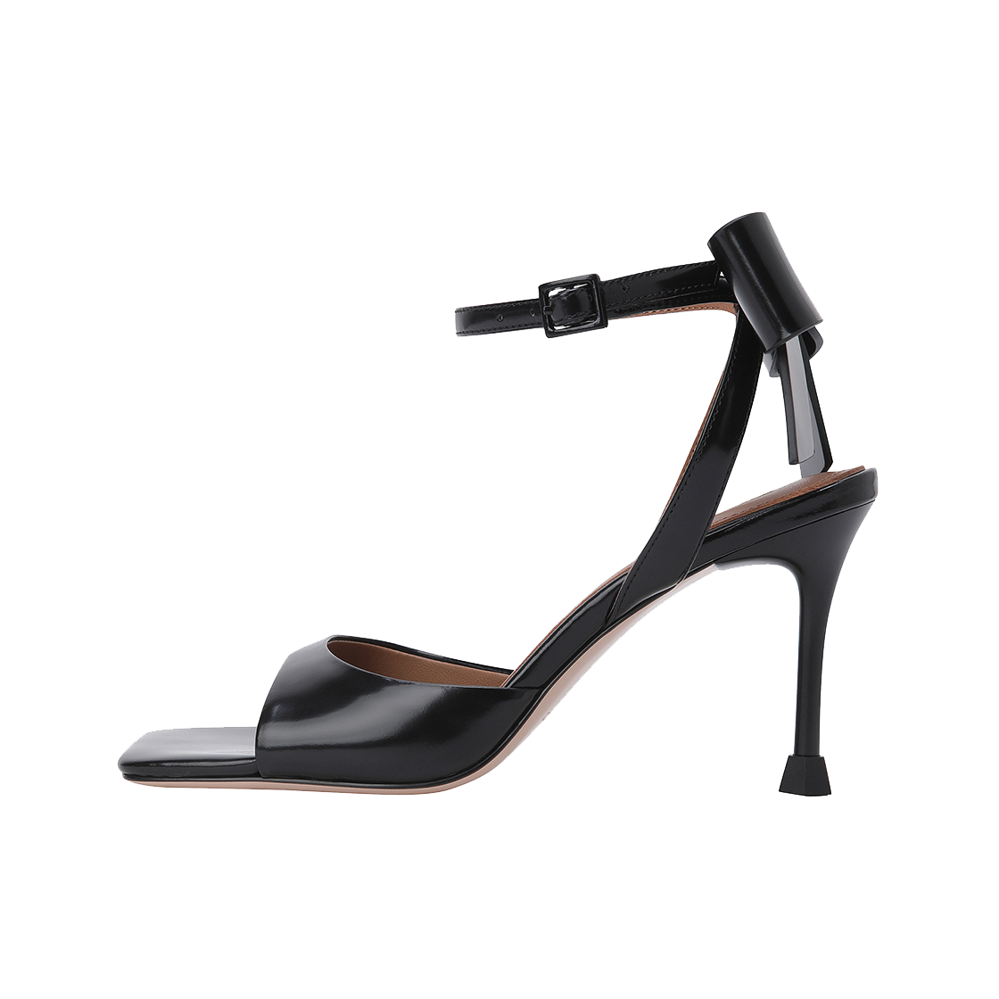 발목 부분에 귀여운 리본이 더해진 슈슈통의 앵클 스트랩 펌프스입니다. - 오픈 스퀘어 토 디자인 - 광택 처리된 가죽 소재 - 발목 핀 버클 스트랩 - 힐 부분에 적용된 리본 디테일 - 그레인 레더 안감 - 레더 아웃솔 * 36사이즈 기준: 총길이 23cm, 전체높이 16cm, 굽높이 8cm