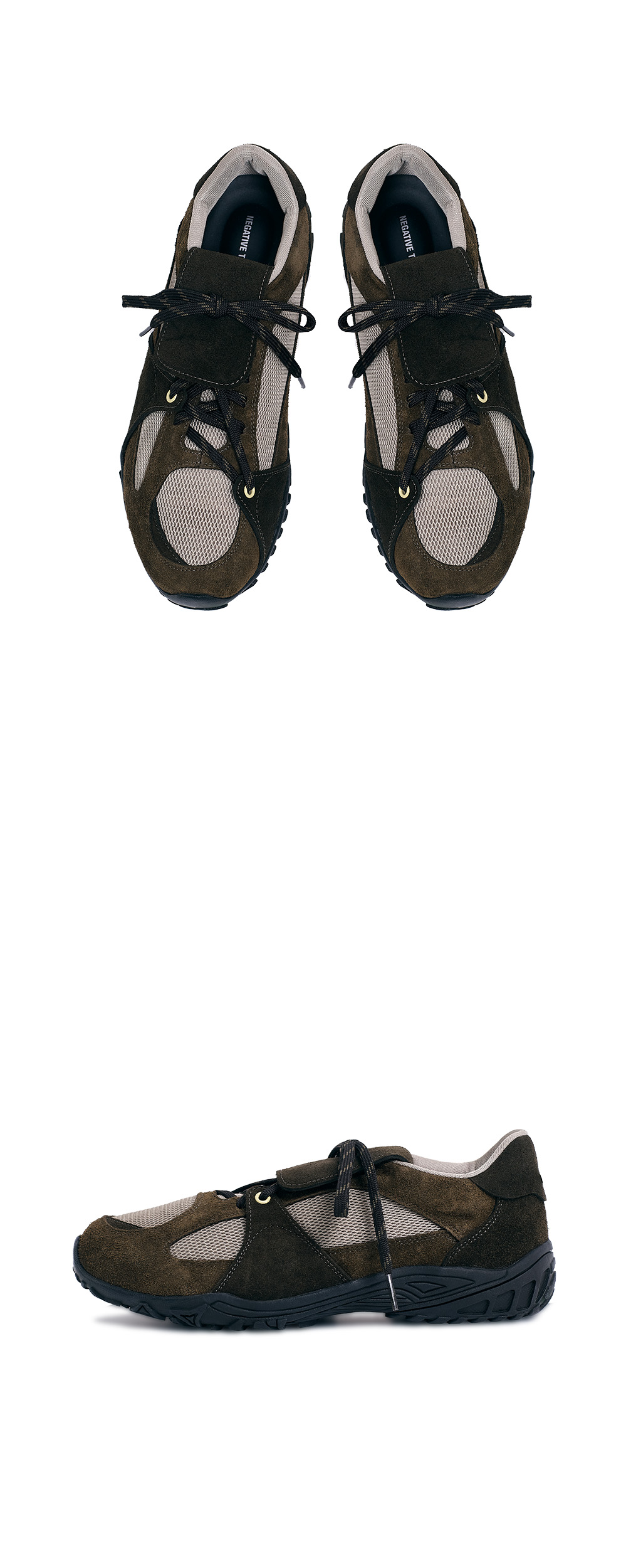 네거티브쓰리 비대칭 스니커즈 카키 브라운
