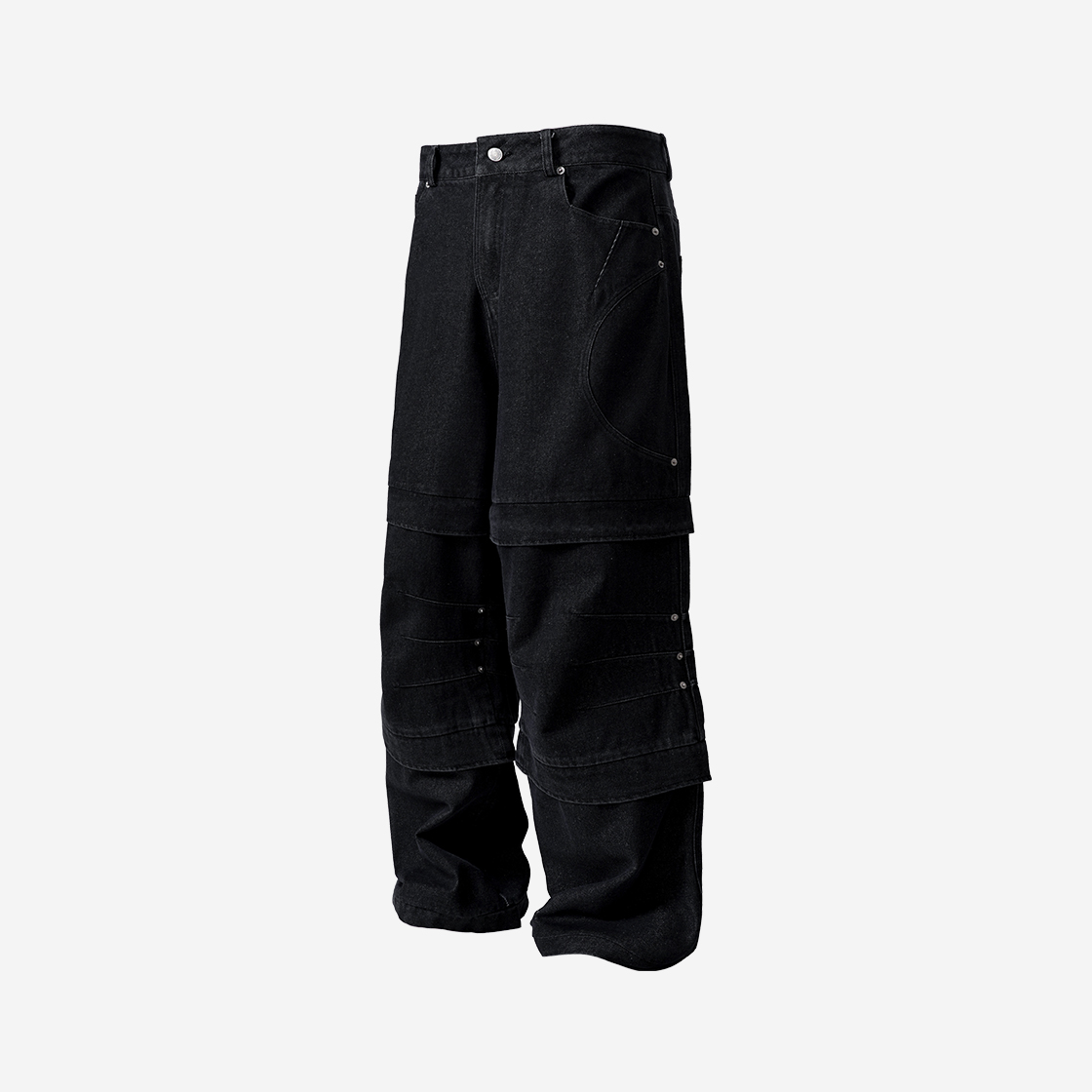 플레이버리즘 더블 레이어드 와이드 데님 팬츠 블랙