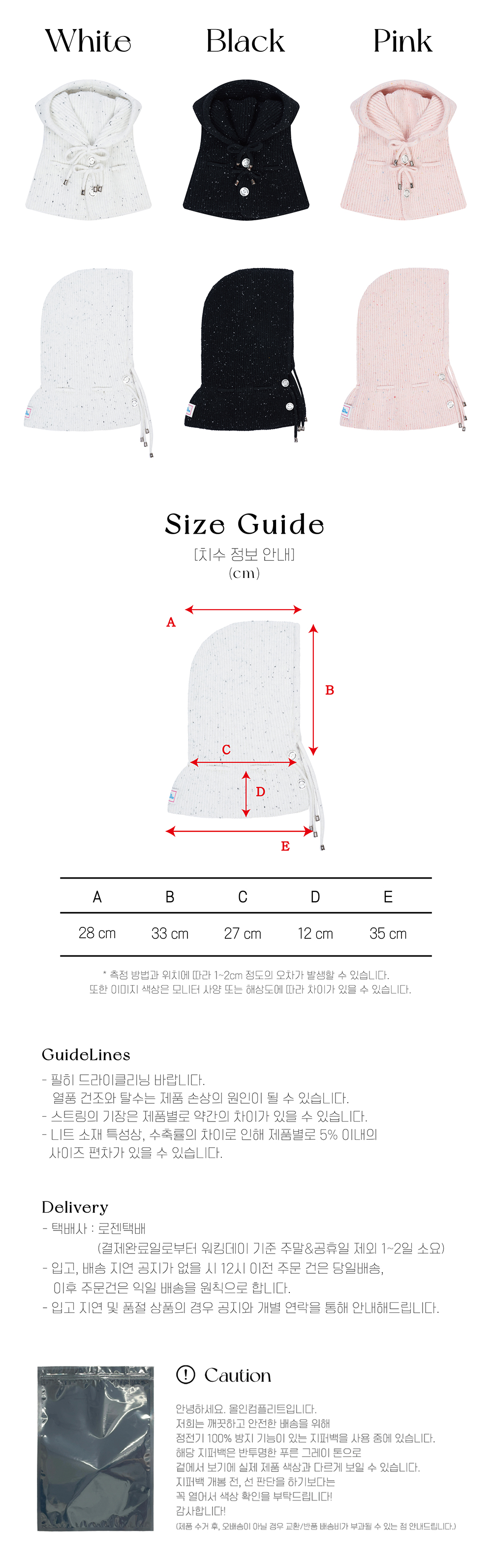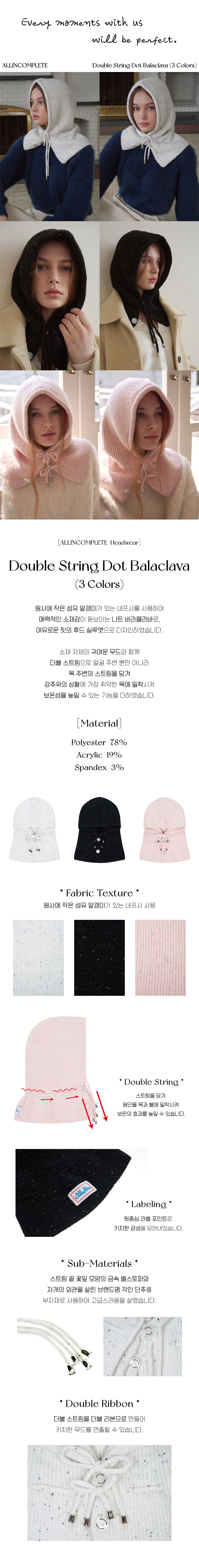 올인컴플리트 더블 스트링 닷 바라클라바 화이트