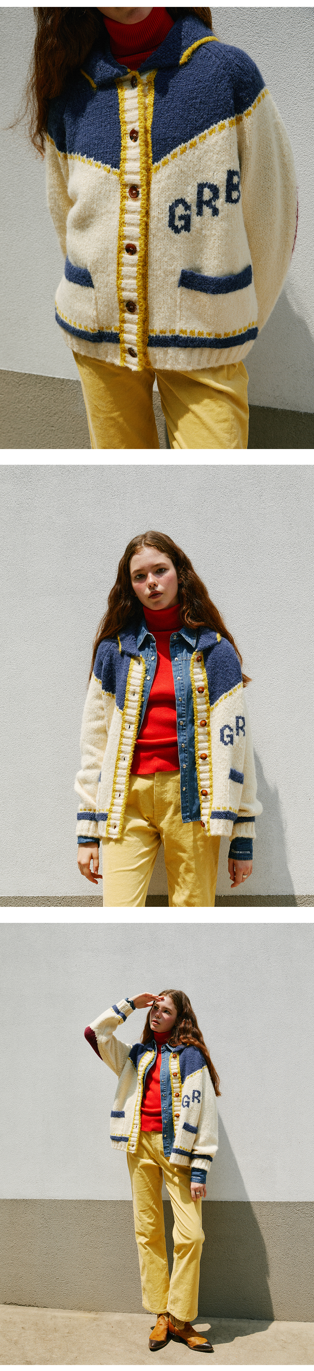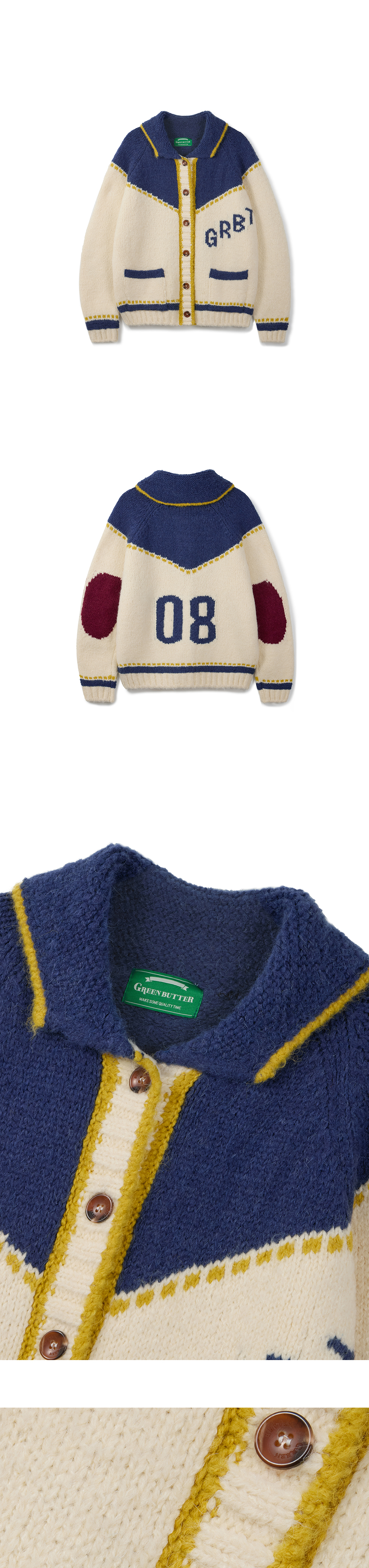 그린버터 엘보우 자카드 코위찬 가디건 아이보리