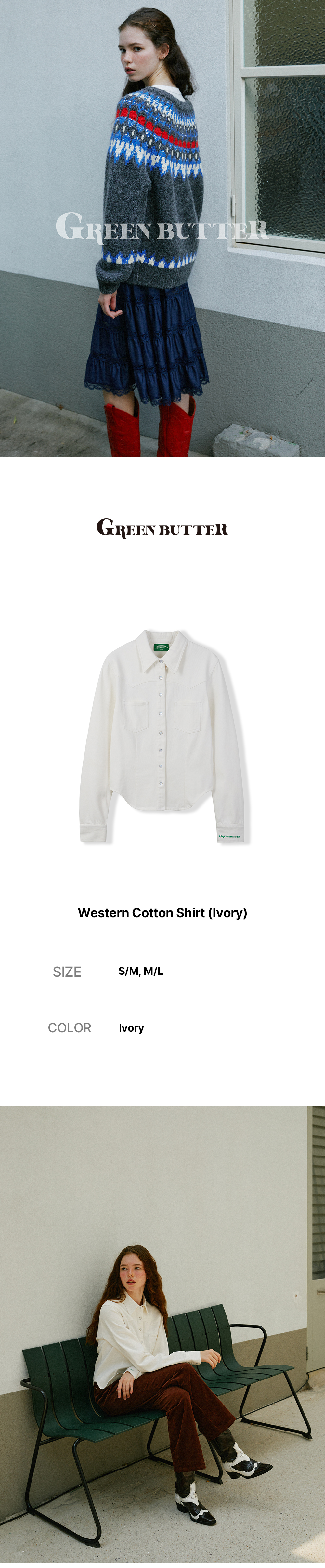그린버터 웨스턴 코튼 셔츠 아이보리
