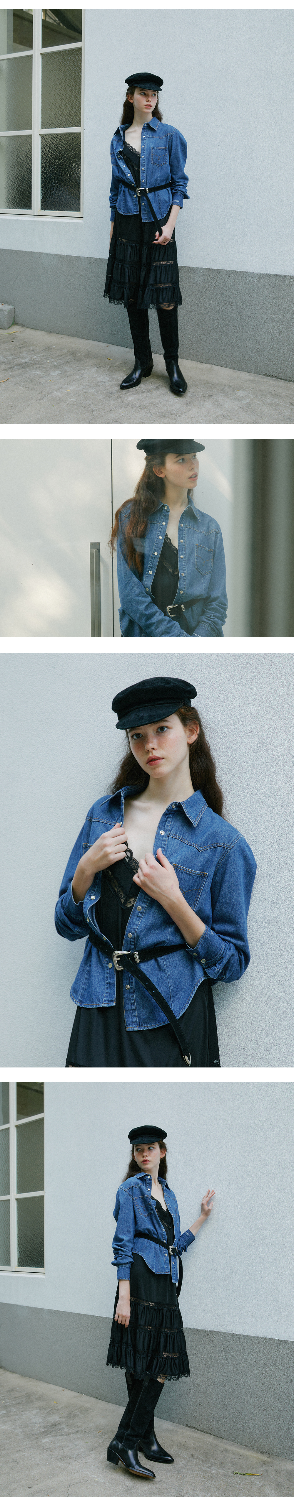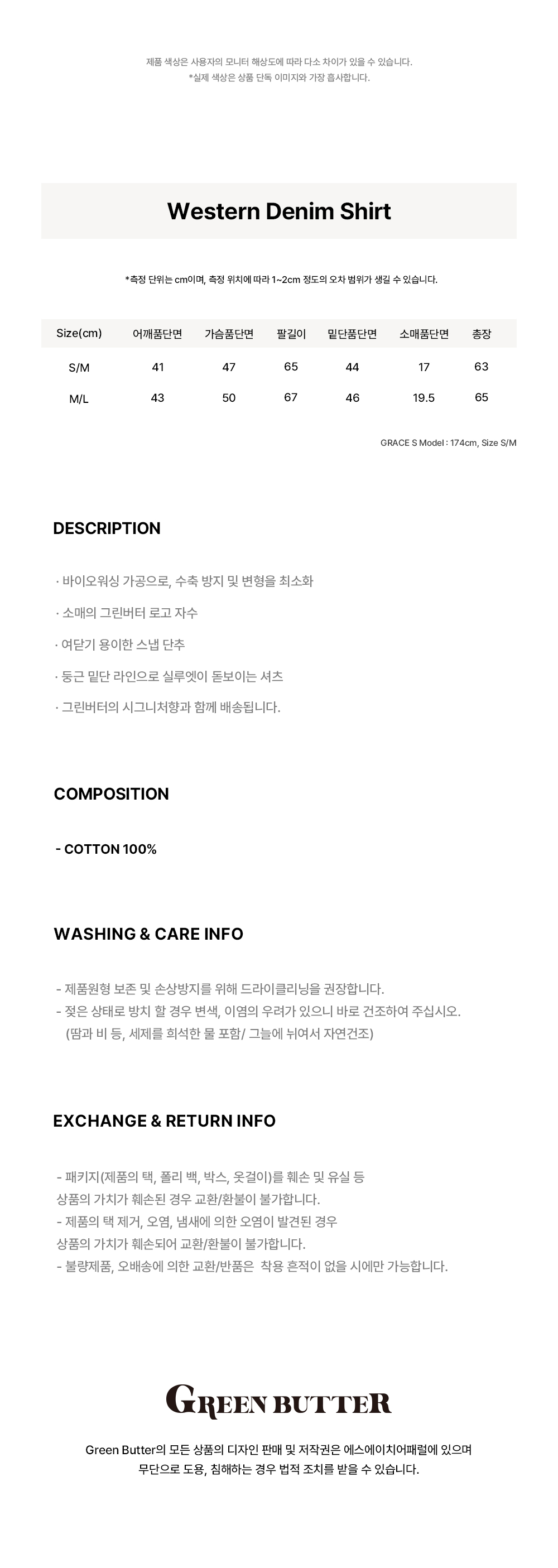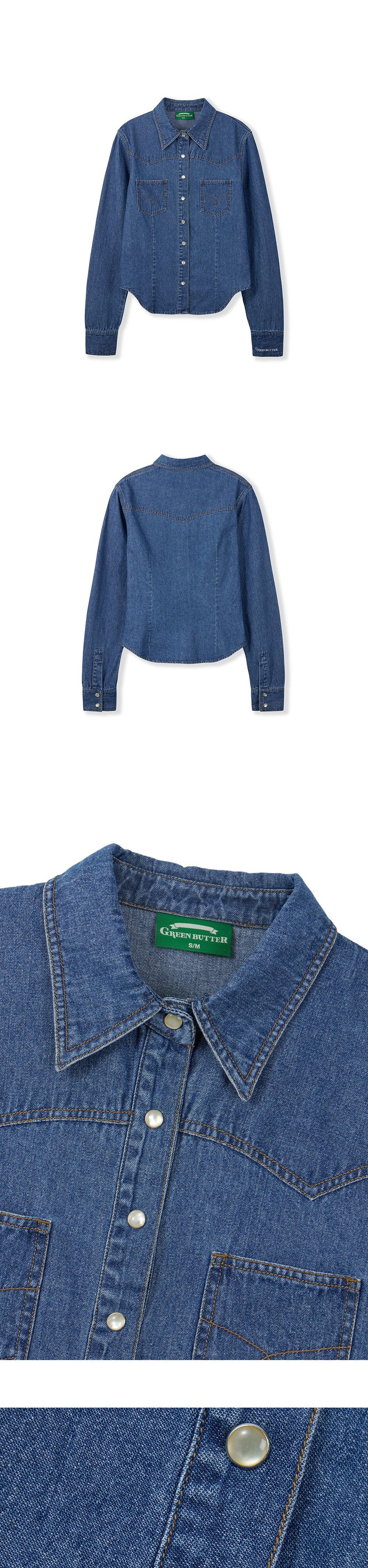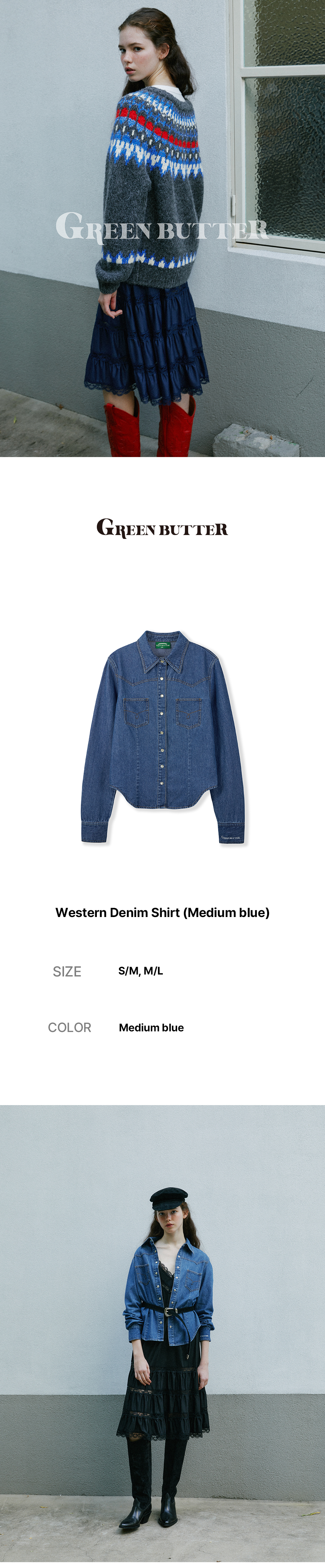 그린버터 웨스턴 데님 셔츠 미디움 블루
