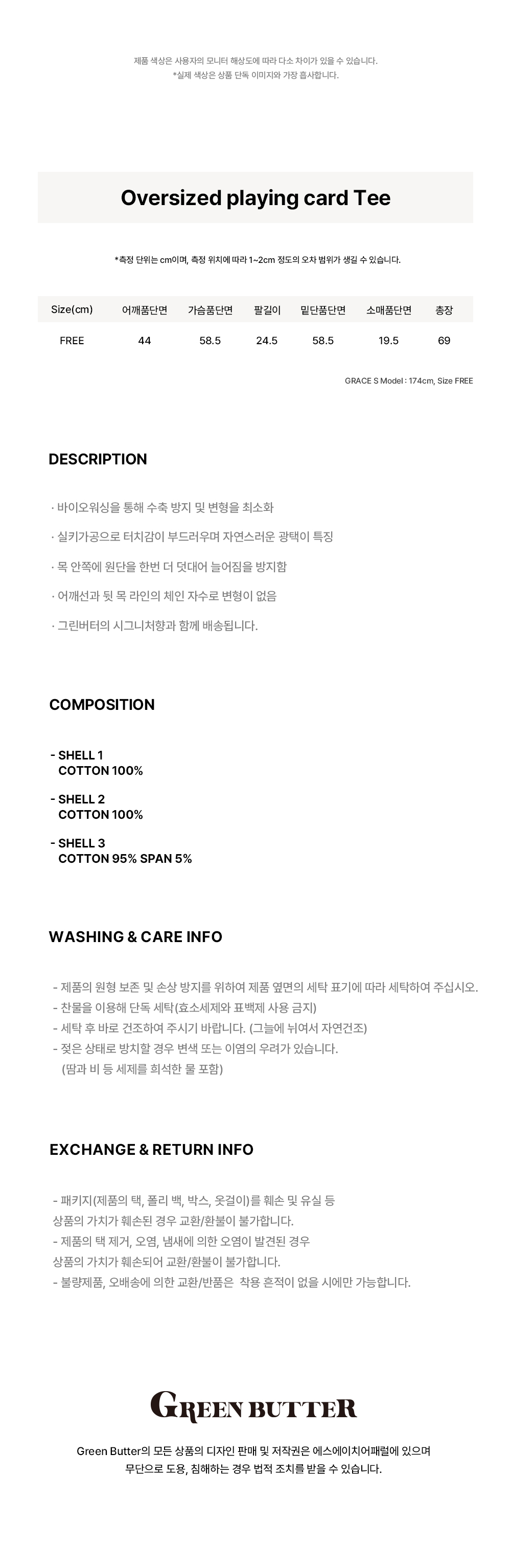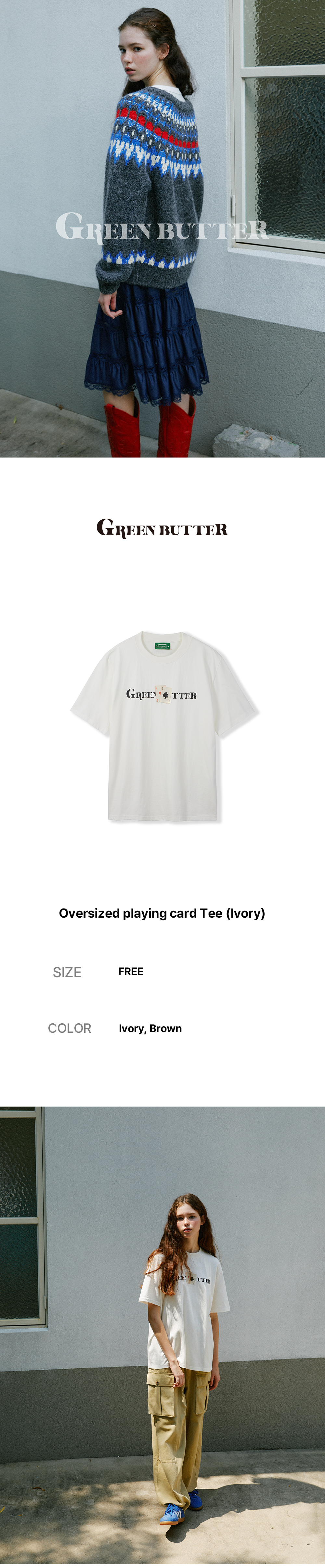 그린버터 오버사이즈드 플레잉 카드 티 아이보리