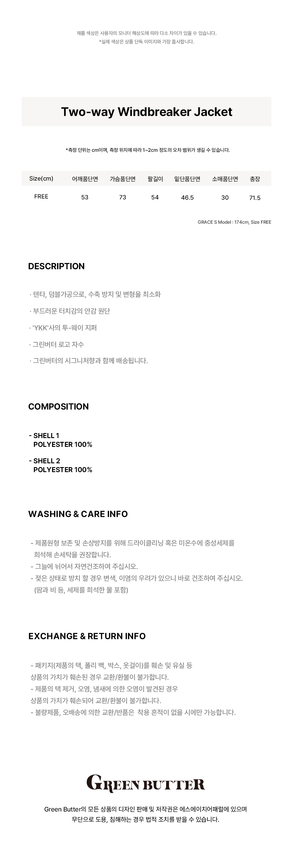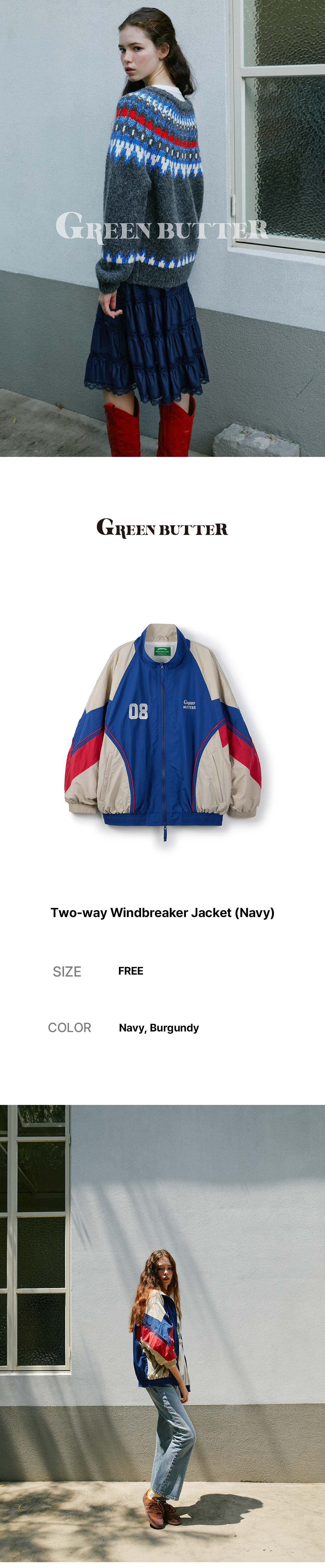 그린버터 투웨이 윈드브레이커 자켓 네이비