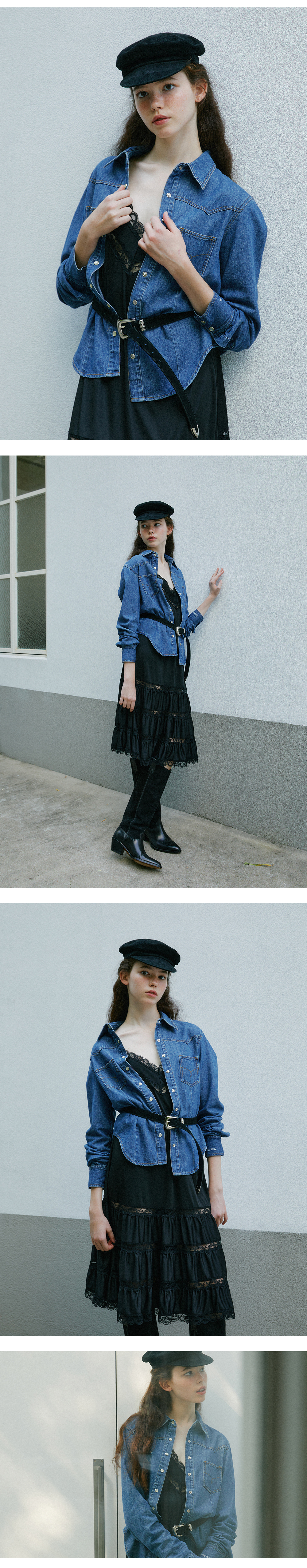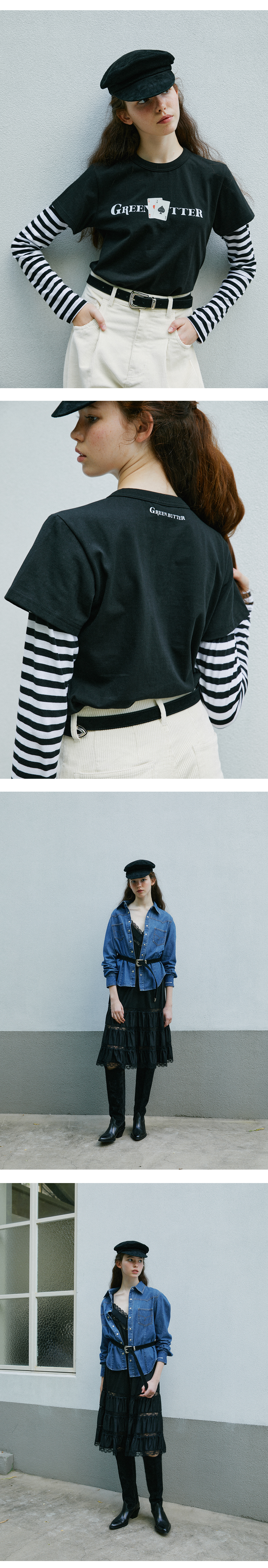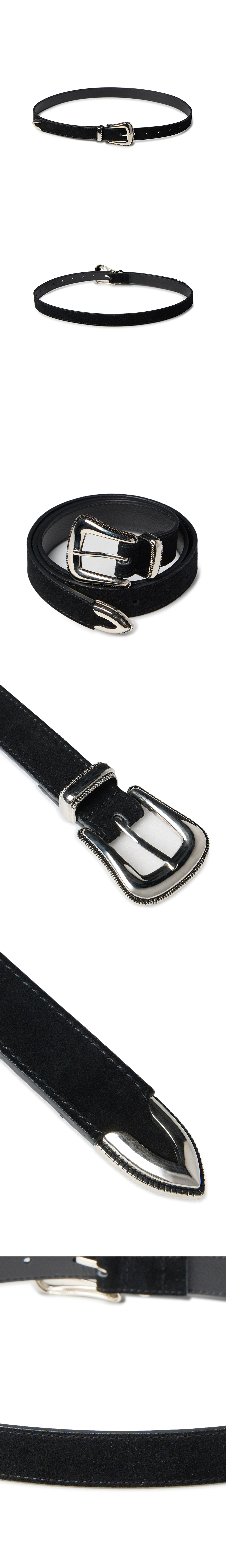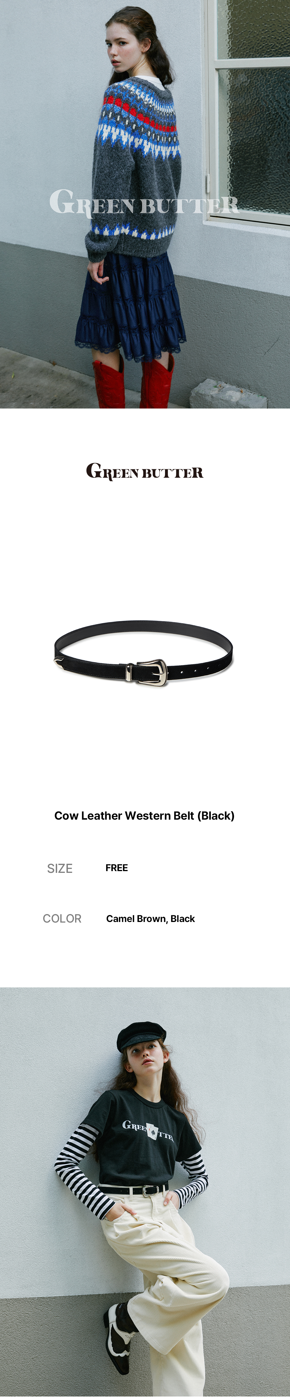 그린버터 카우 레더 웨스턴 벨트 블랙