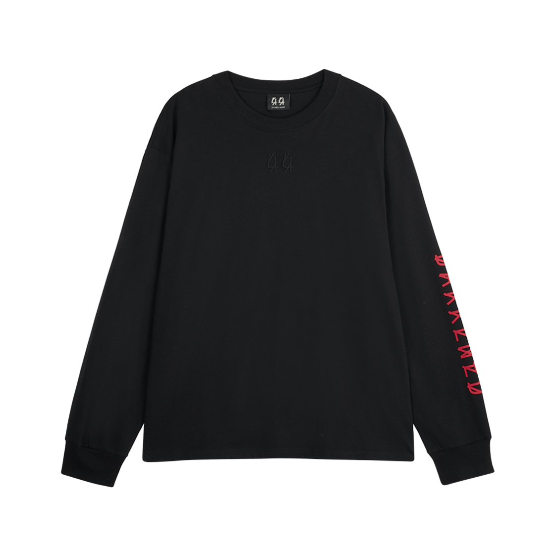 여유로운 실루엣에 시그니처 레드 컬러 포인트가 더해진 44 레이블 그룹의 다큰드 롱슬리브입니다. - 릴렉스 핏 - 전면 로고 자수 - 좌측 소매 'DARKENED' 로고 프린팅 - 후면 로고 그래픽 프린팅 - 높이감 있는 넥라인 립