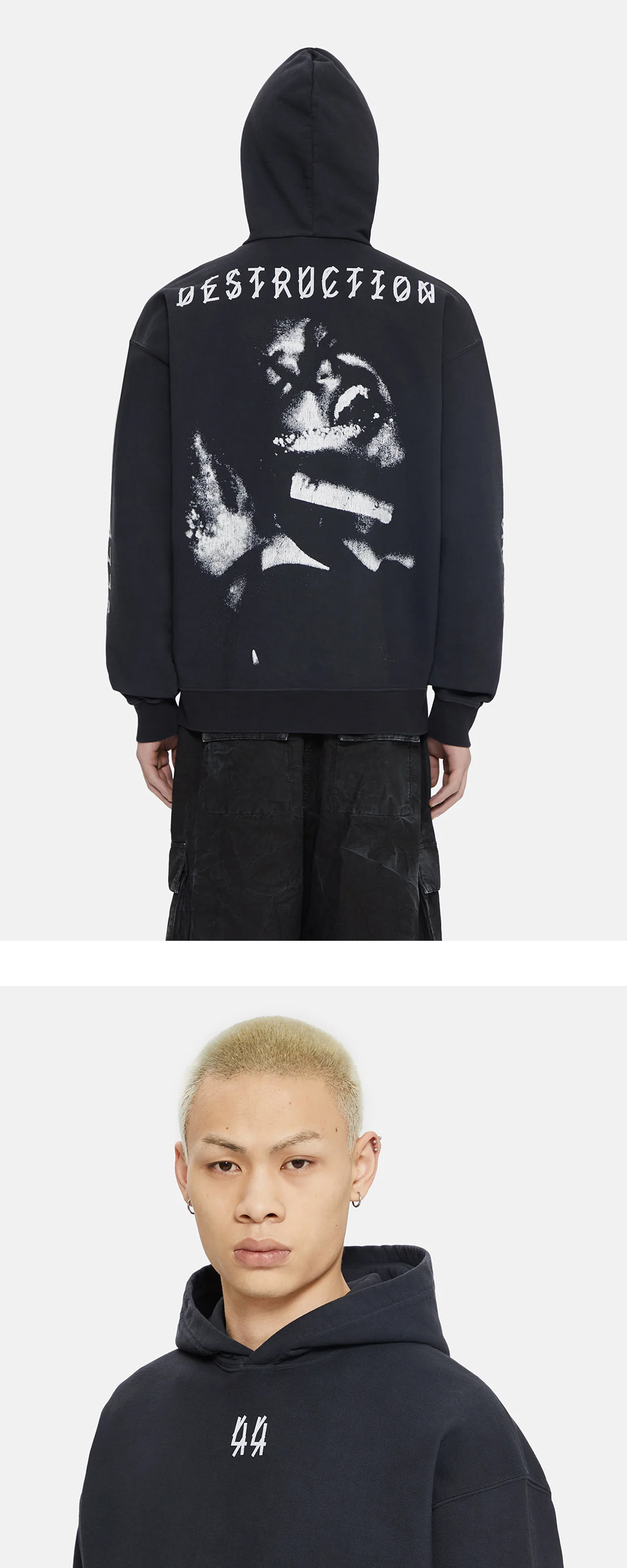 44 레이블 그룹 디스트럭트 후디 블랙 - 24FW