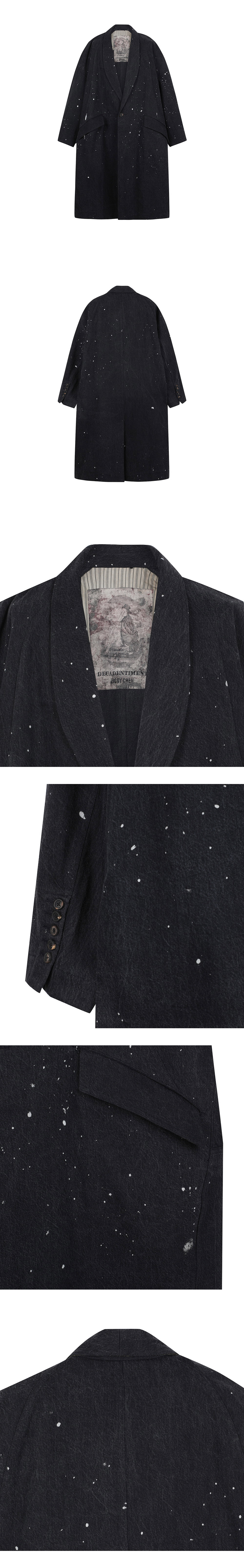 어깨에서 소매까지 이어지는 곡선의 실루엣이 매력적인 지기첸의 숄 칼라 코트입니다. - 오버사이즈 핏 - 드롭 숄더 - 빈티지한 데님의 느낌을 위한 케미컬 워싱 처리 - 경년변화를 느낄 수 있는 내구성 높은 데님 소재