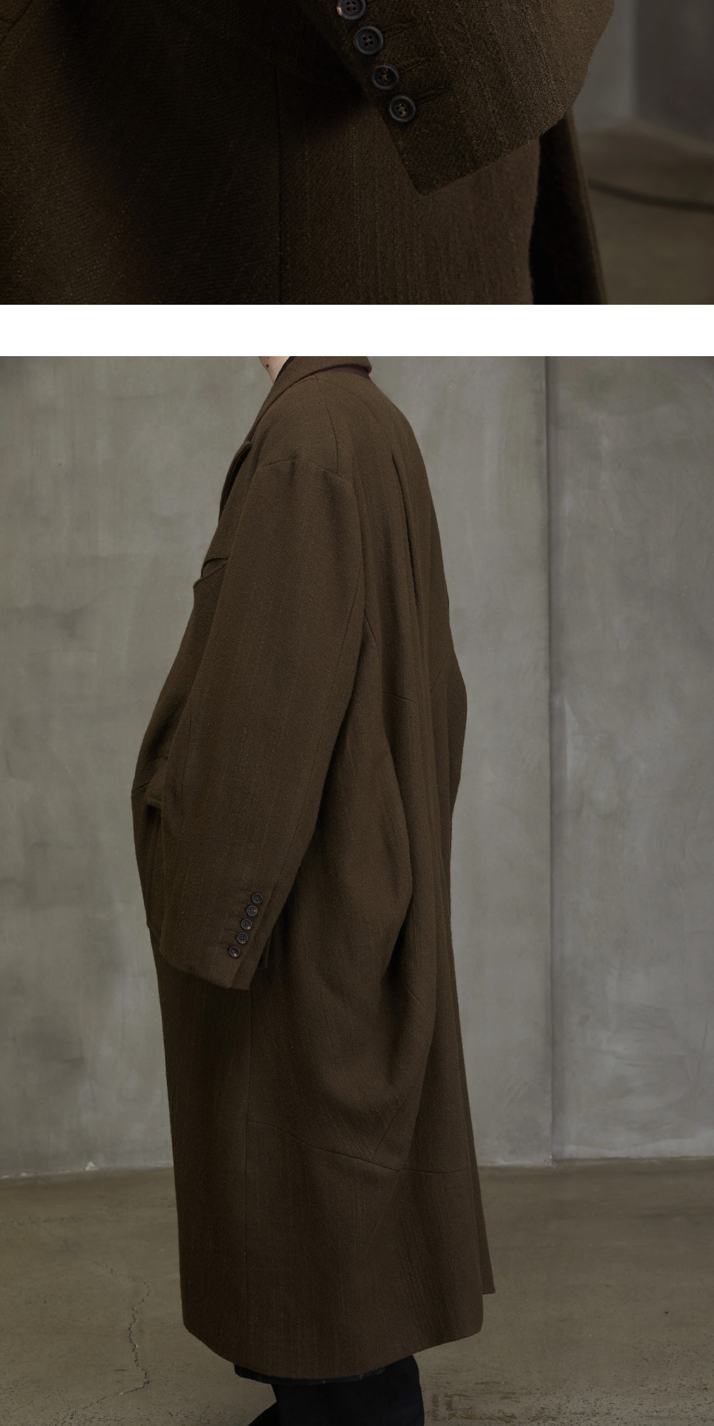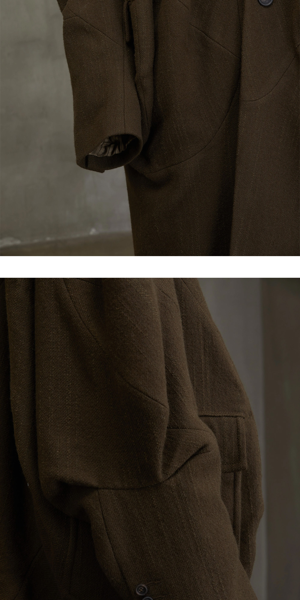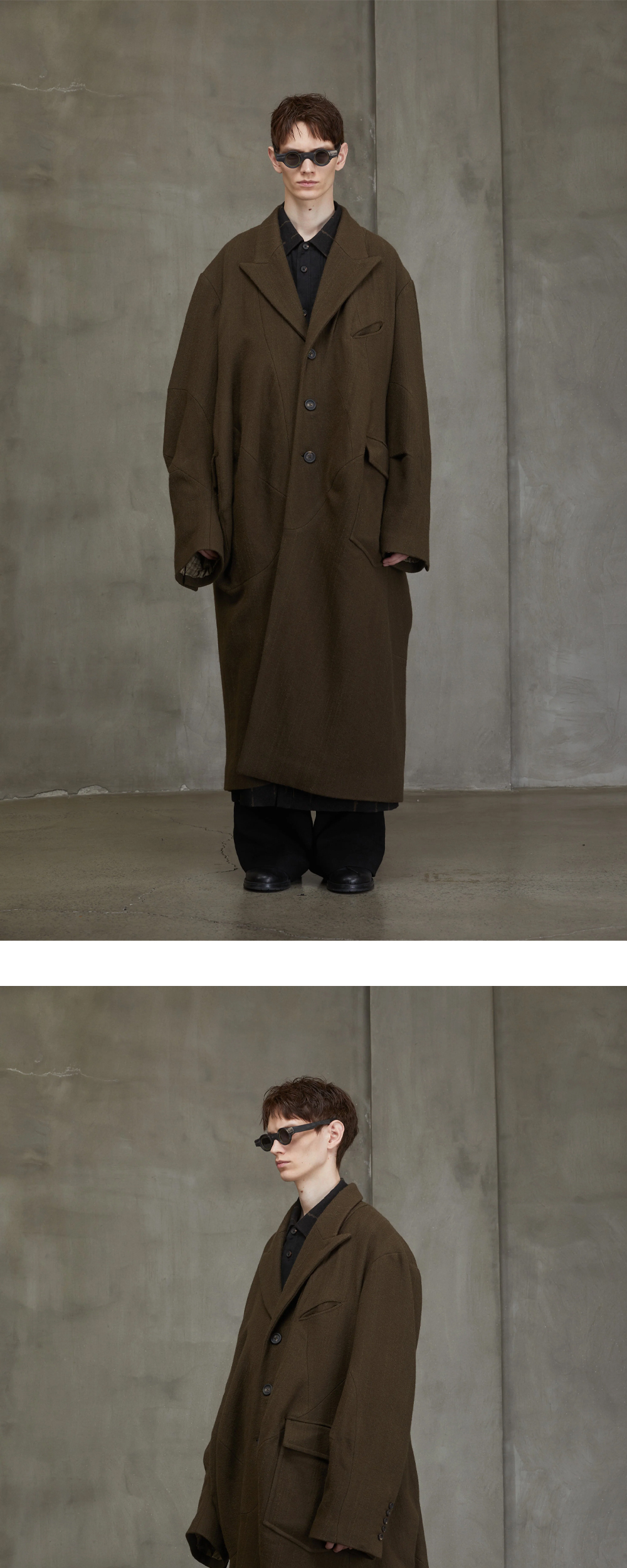 두꺼운 원단감과 불규칙적인 디테일이 특징적인 지기첸의 픽 칼라 코튼입니다. - 오버사이즈 핏 - 깊게 파인 칼라와 큰 피크 라펠 - 후면 및 우측 소매 다트 디테일