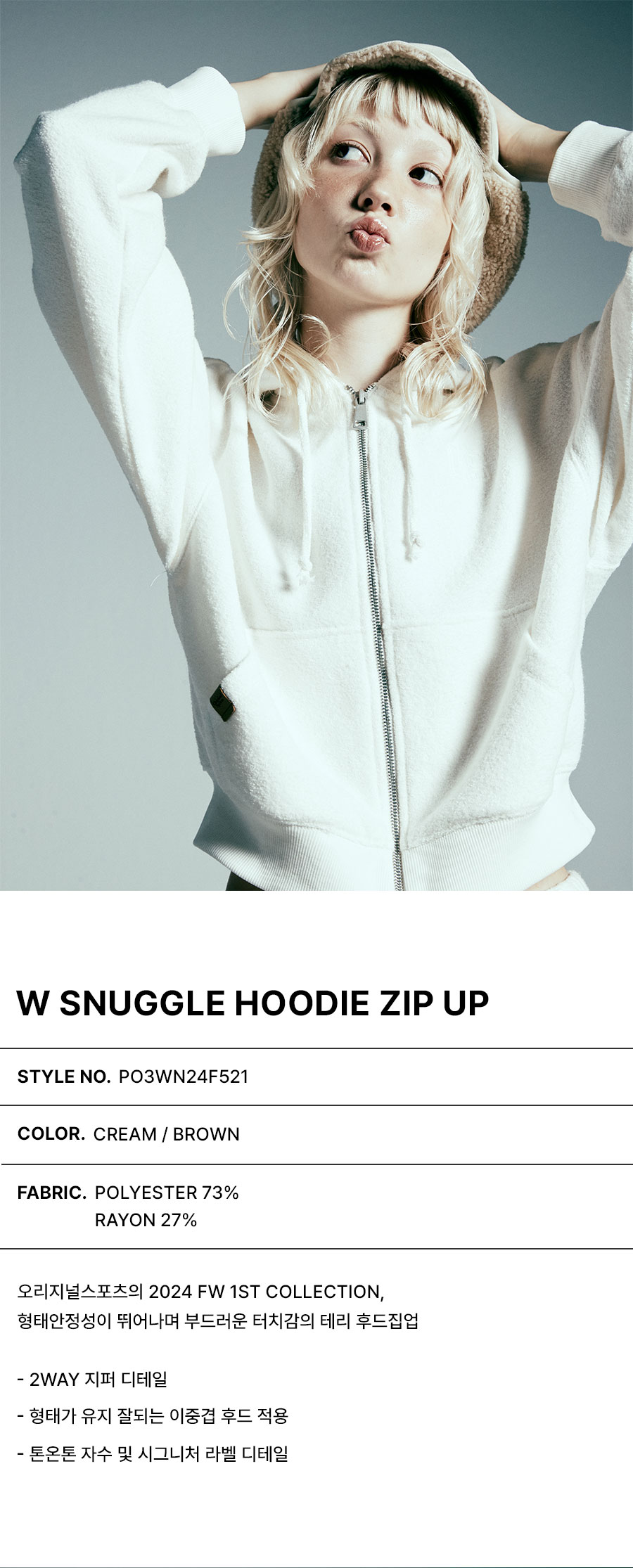프로-스펙스 우먼 스너글 후디 집업 크림