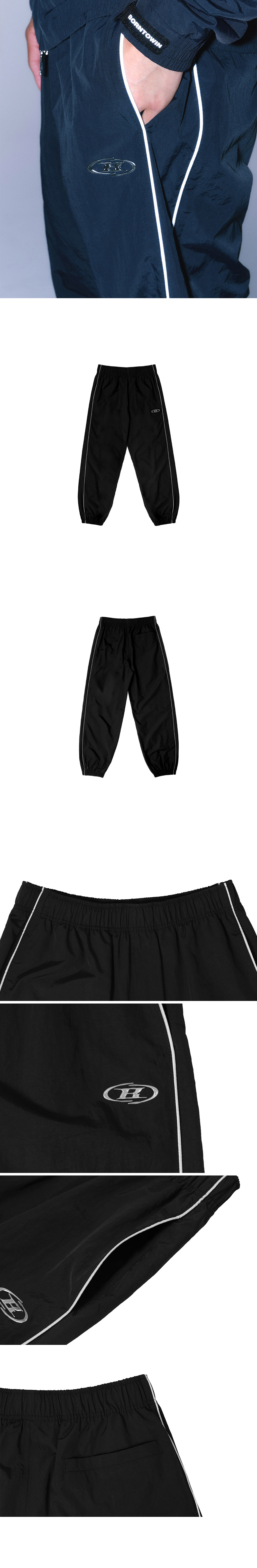 [DETAILS] * 실버 라인 나일론 조거팬츠 - 발수, 방풍 기능성 나일론 원단 - 활동성 좋은 세미 와이드핏 - 다양한 스타일링이 가능한 조거 실루엣 - 실버 B 로고 포인트 Material : NYLON 100% Fitting : DS 1 Size, 178cm, 70kg / SD 1 Size, 182cm, 80kg /GY 1 Size, 165cm, 53kg
