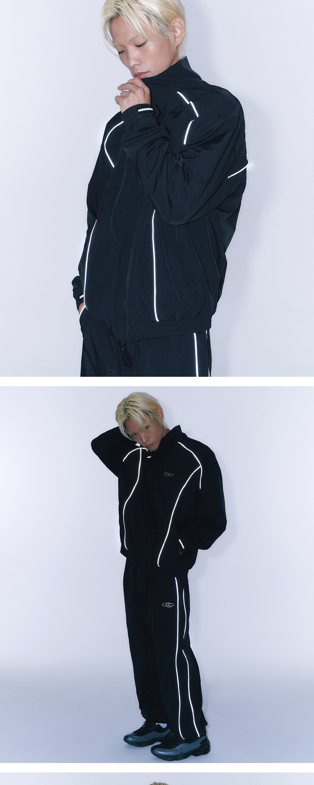 본투윈 실버 라인 나일론 윈드 브레이커 블랙