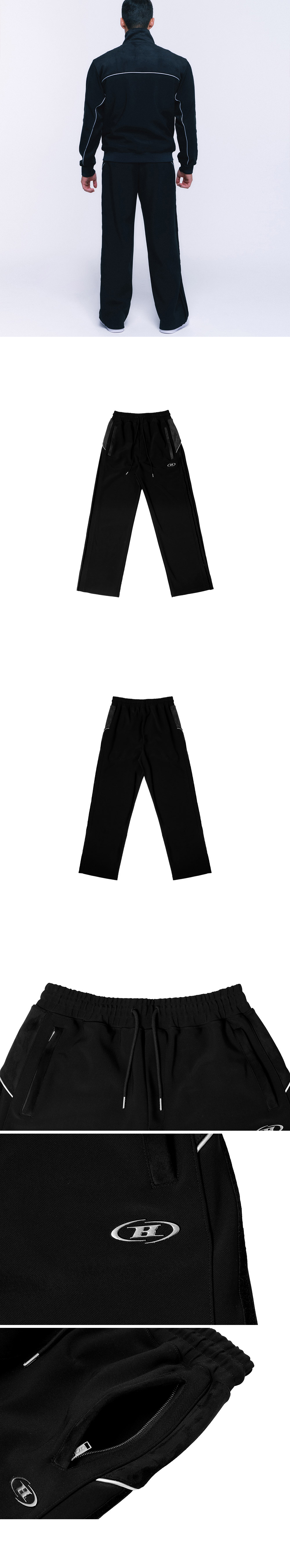 본투윈 스웨이드 실버 라인 저지 와이드 팬츠 블랙