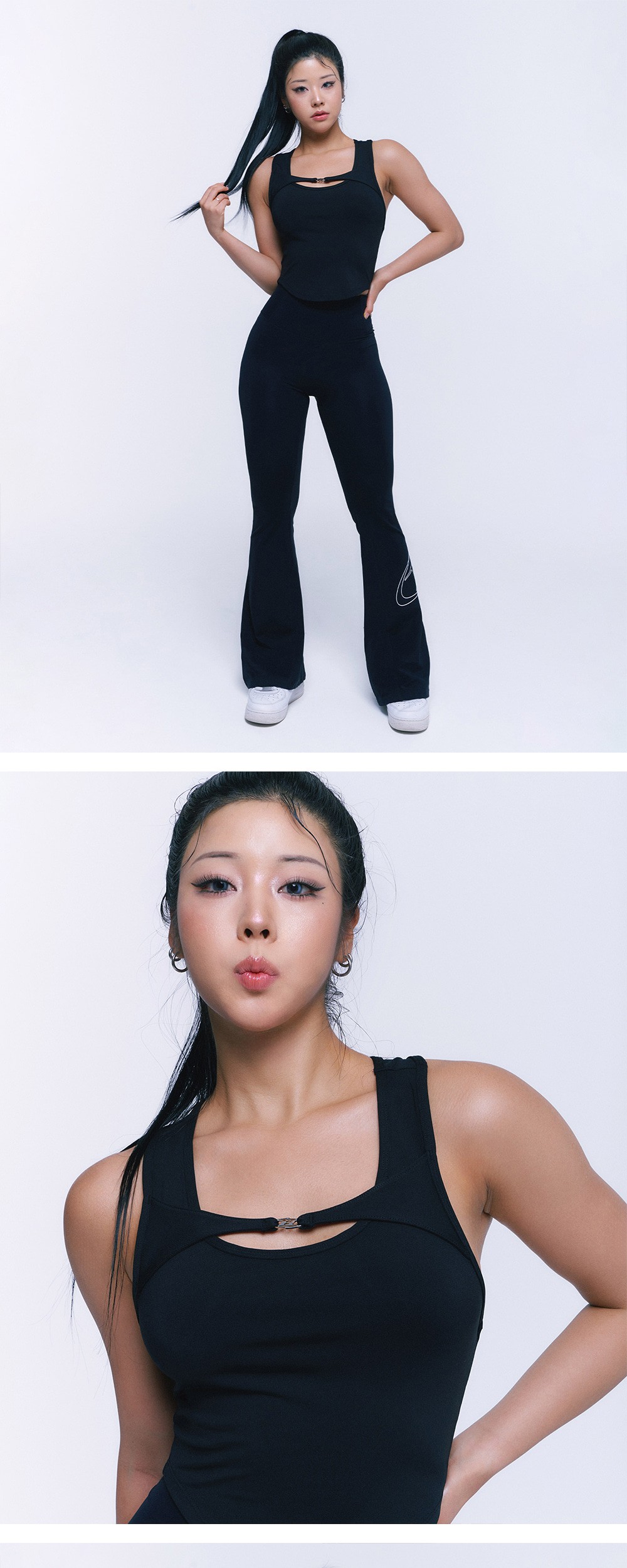 [DETAILS] * B 버클 컷아웃 크롭 슬리브리스 - 신축성 좋은 폴리스판 원단 - 서지컬 B 로고 버클 디테일 - 격한 움직임에 적합한 슬림핏 실루엣 Material : POLYESTER 84%, POLYURETHANE 16% Fitting : 1 Size, 165cm, 53kg