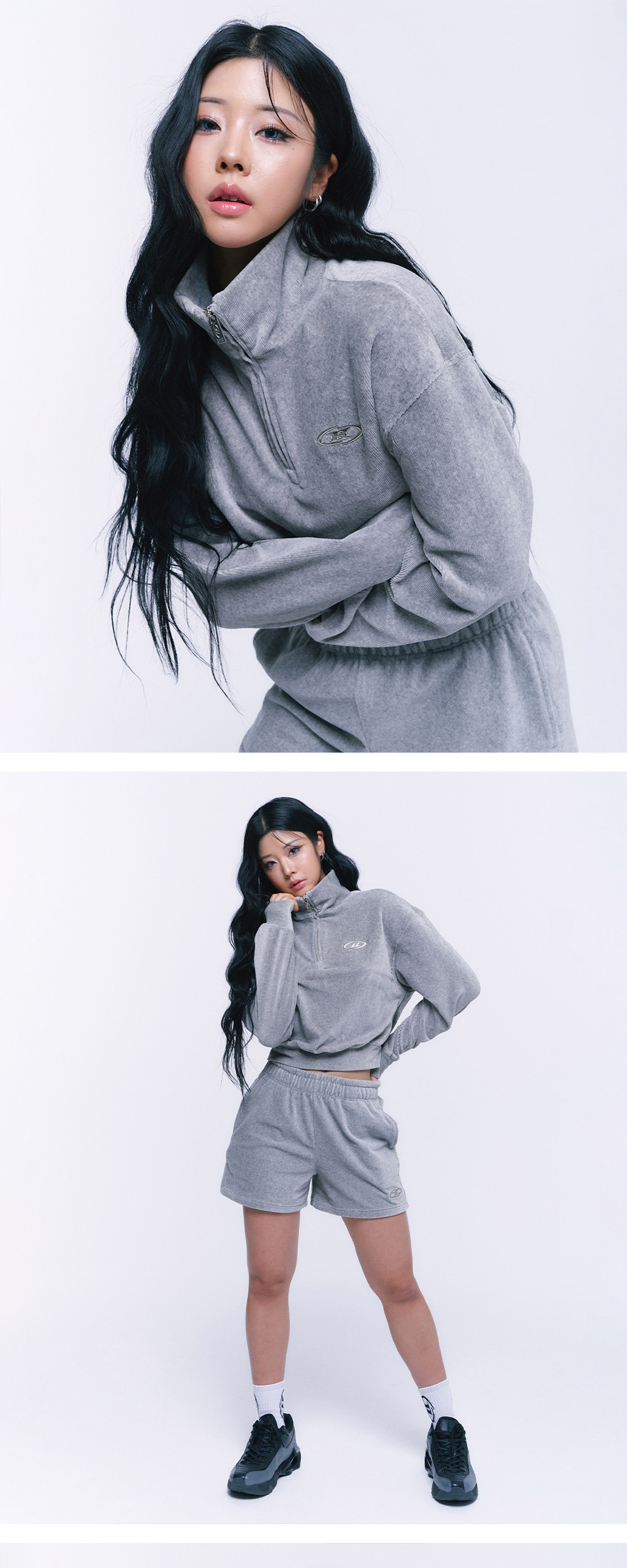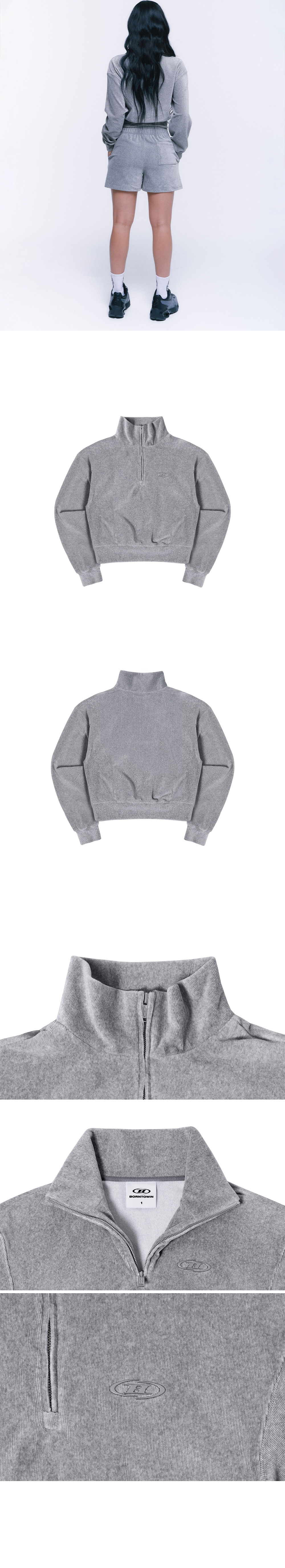 본투윈 B 크롬 크롭 벨루어 하프 집업 멜란지 그레이